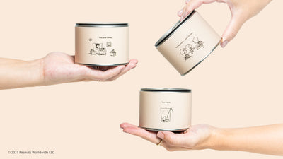「PEANUTS」との限定コラボ茶缶第二弾。今年はシングルオリジン煎茶、ほうじ茶、玄米茶の3種類。読書したり、コップの中でくつろぐスヌーピーのイラストも!