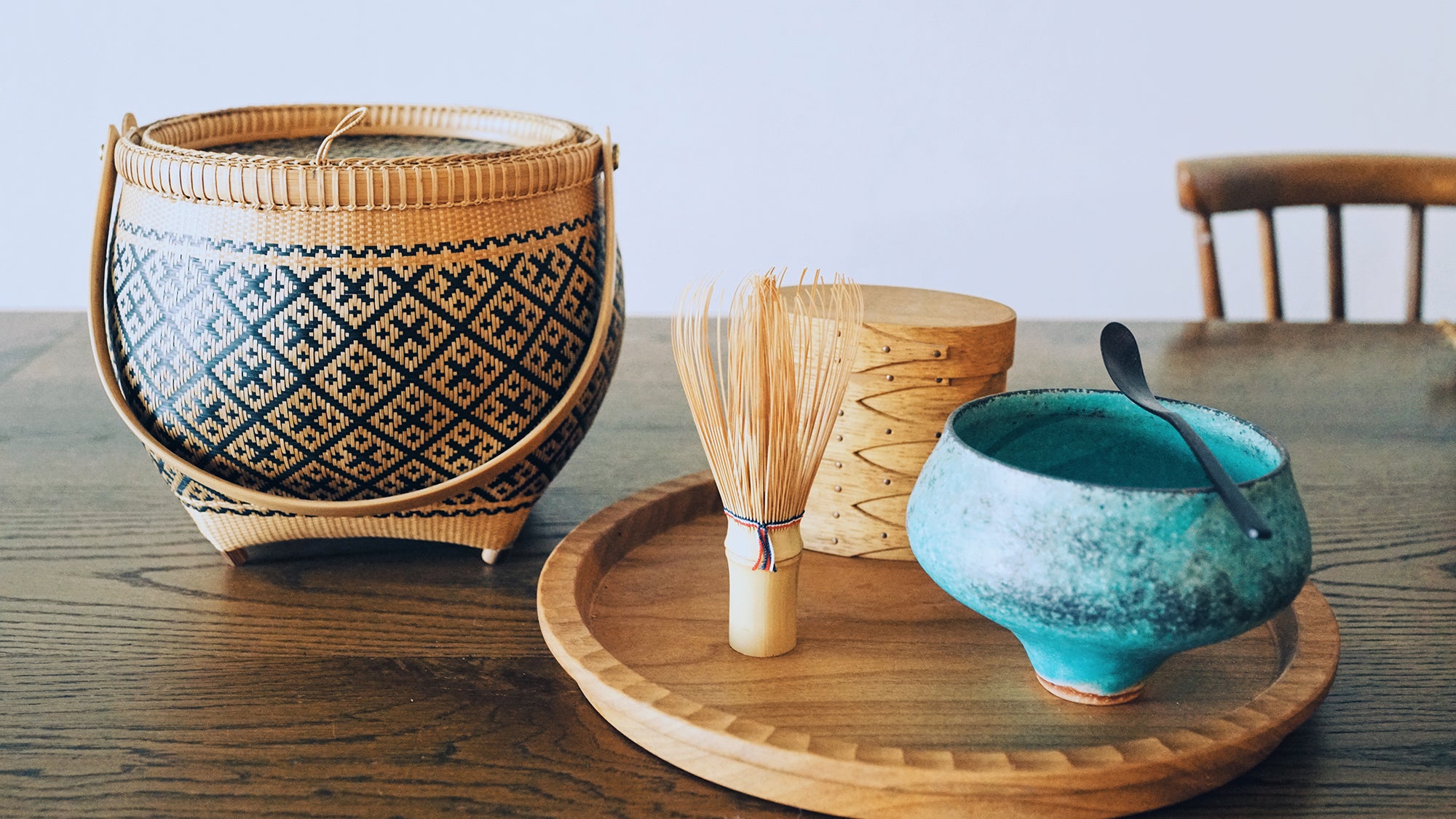 あとは、奈良の茶筅師、谷村丹後さんにオーダーで作っていただいた、トリコロール色系を使った白竹茶筅。モダンでながらも洗練された使い心地が気に入っています。
