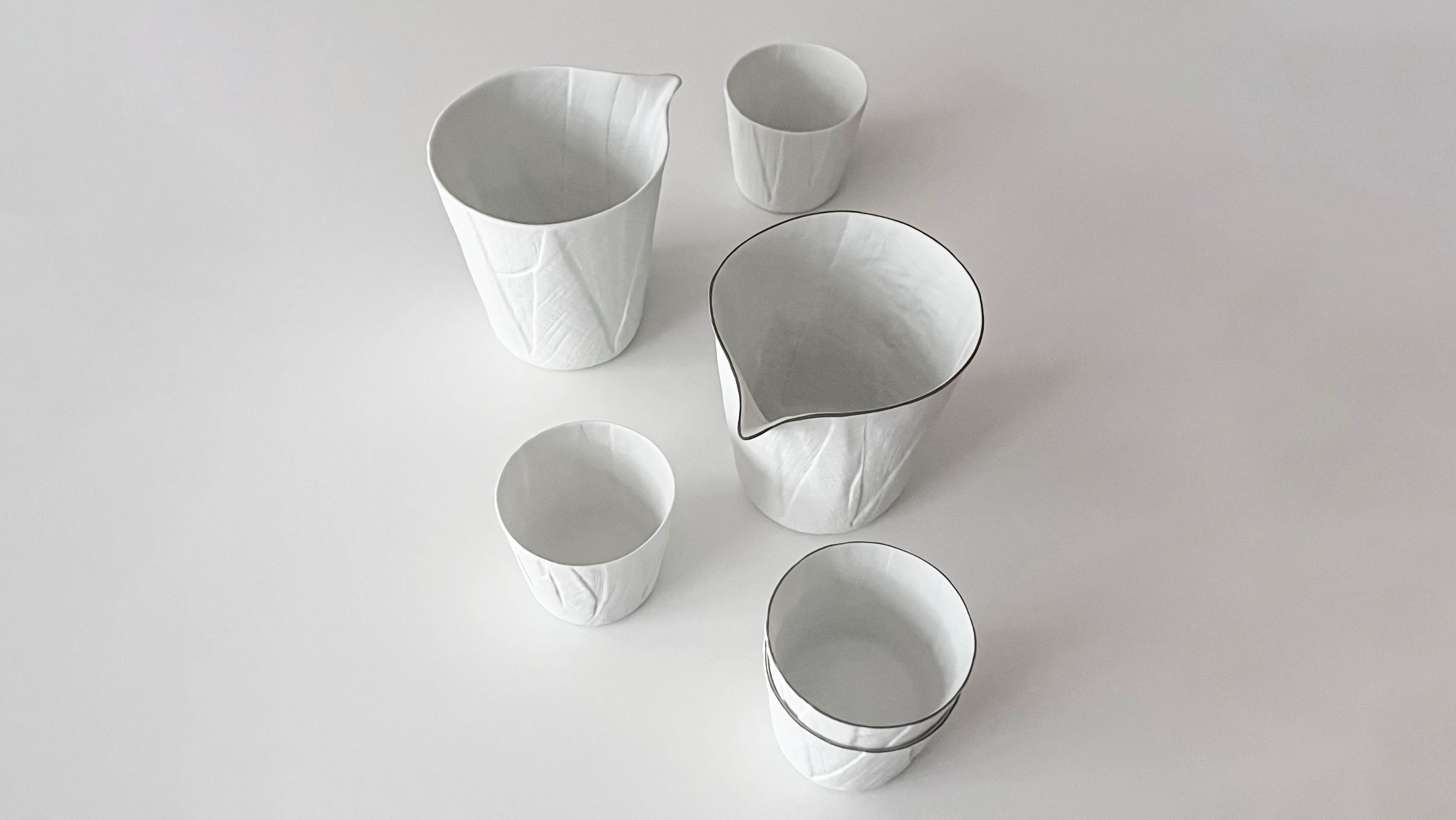 特に、軽くて薄い磁器に表面のリネンのような質感が特徴の「ceramic mimic fabric」は、形状・布目共に一つ一つが違い、同じものがありません。その違いこそ手仕事のよさだし、器の楽しみどころではないかなと。