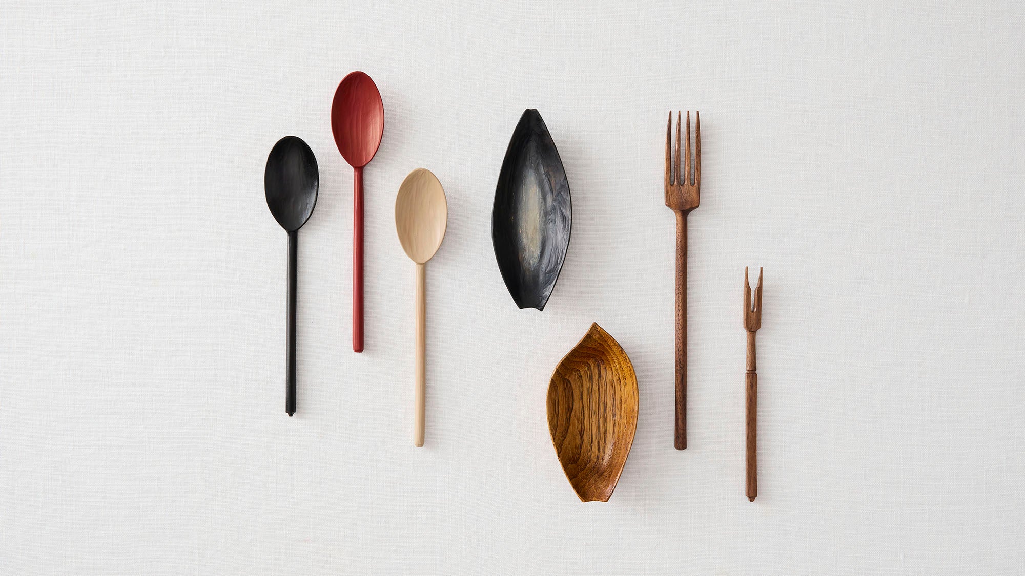 お皿を傷つけにくく、口に含んだときに金属と違って温度差がないのも、木製のカトラリーのよいところ。おいしいものを、さらにおいしくいただけるフォークです。