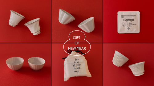 【GIFT OF NEW YEAR】年末仕様の特別なギフトセット◎人気の作家の茶杯2点+お試しサイズの4g茶葉をコットンバッグに詰めてお届け