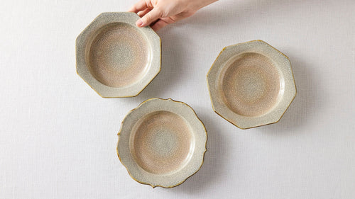 ヒラヒラしていてかわいいお皿だなーと思い、購入しました。目跡「あり」と「なし」があると商品説明に書かれてあり、どっちが来るだろうー?と楽しみにしていましたが、目跡あり!個人的に目跡が大好きなもので嬉しかったです。そして、このヒラヒラがなんとも美しく、想像以上にかわいかった。お気に入りです。