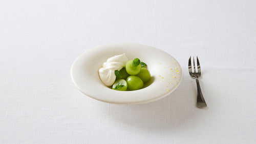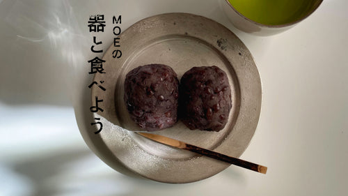 MOEの、器と食べよう|亀田大介さんの「銀磁5寸リム皿」と自家製おはぎ