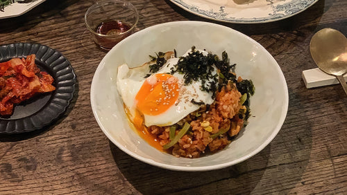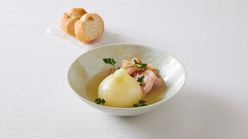 優しい色の器には、優しい味付けの料理が似合う。作山窯「宙 浅ボウル」