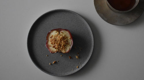 三木麻友美「ほっとする時間に合わせるスタイリッシュな器」− 切立プレートと焼き林檎とほうじ茶