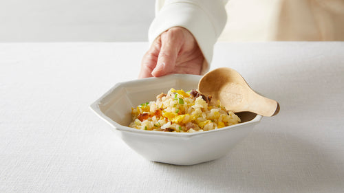 シャープな線と柔らかいカーブでどんな食卓にも合う。中村豊実「白八角鉢」