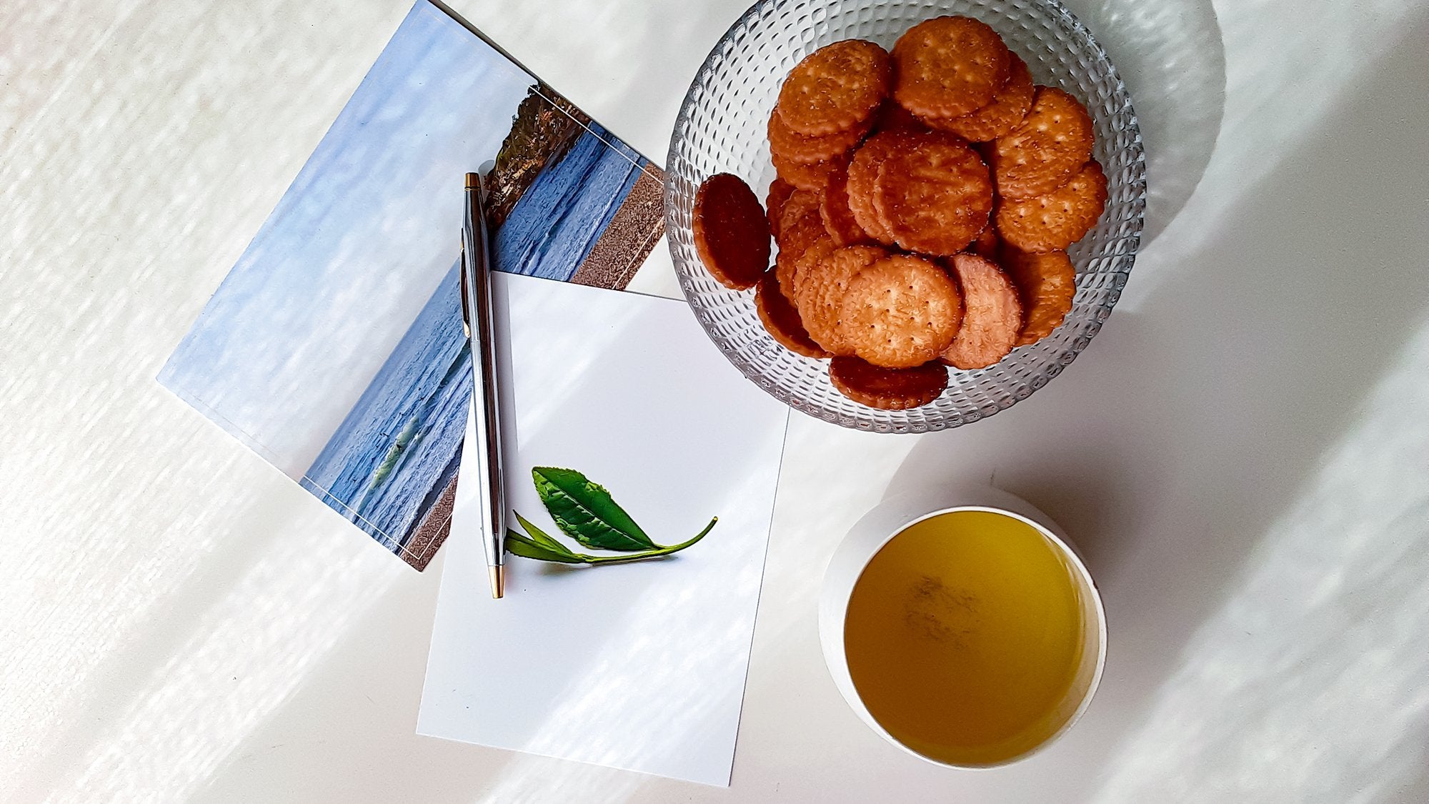 【お菓子とお茶】まじめなおかし。野村煎豆加工店の「まじめ ミレービスケット」と「047 釜炒りはるもえぎ」