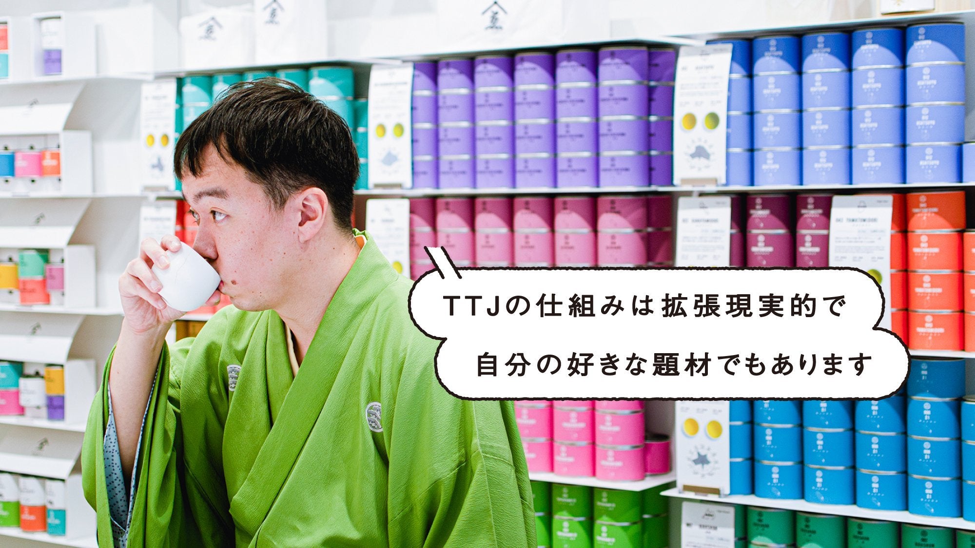 吉笑:TTJを読みながらお茶を飲んでもらうことで、普通に飲んだ時よりもお茶の味わいが変わりうる…っていう仕組みは、拡張現実的で自分の好きな題材でもあります。