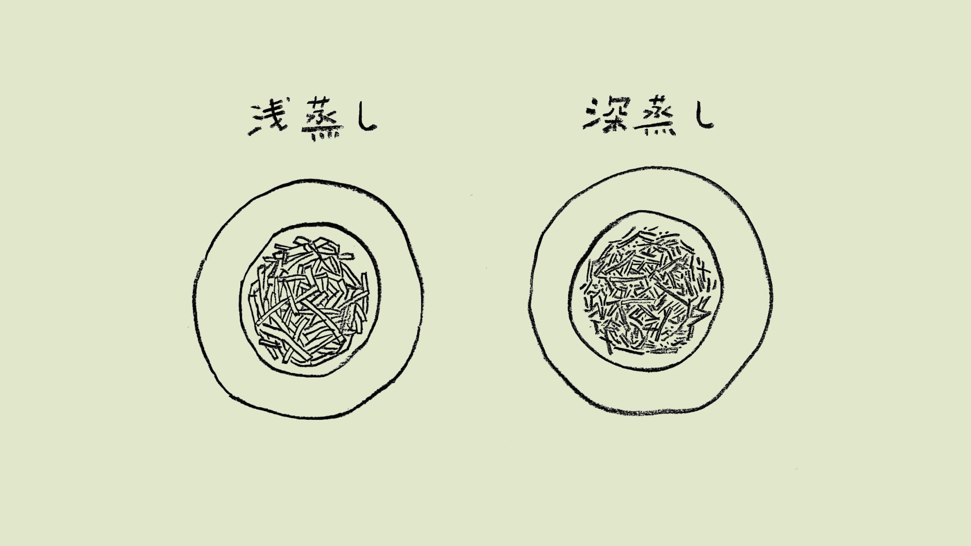 浅蒸しは約10〜30秒、中蒸しが約30〜40秒程度であるのに対し、1分以上など、長時間蒸したものが深蒸し茶。