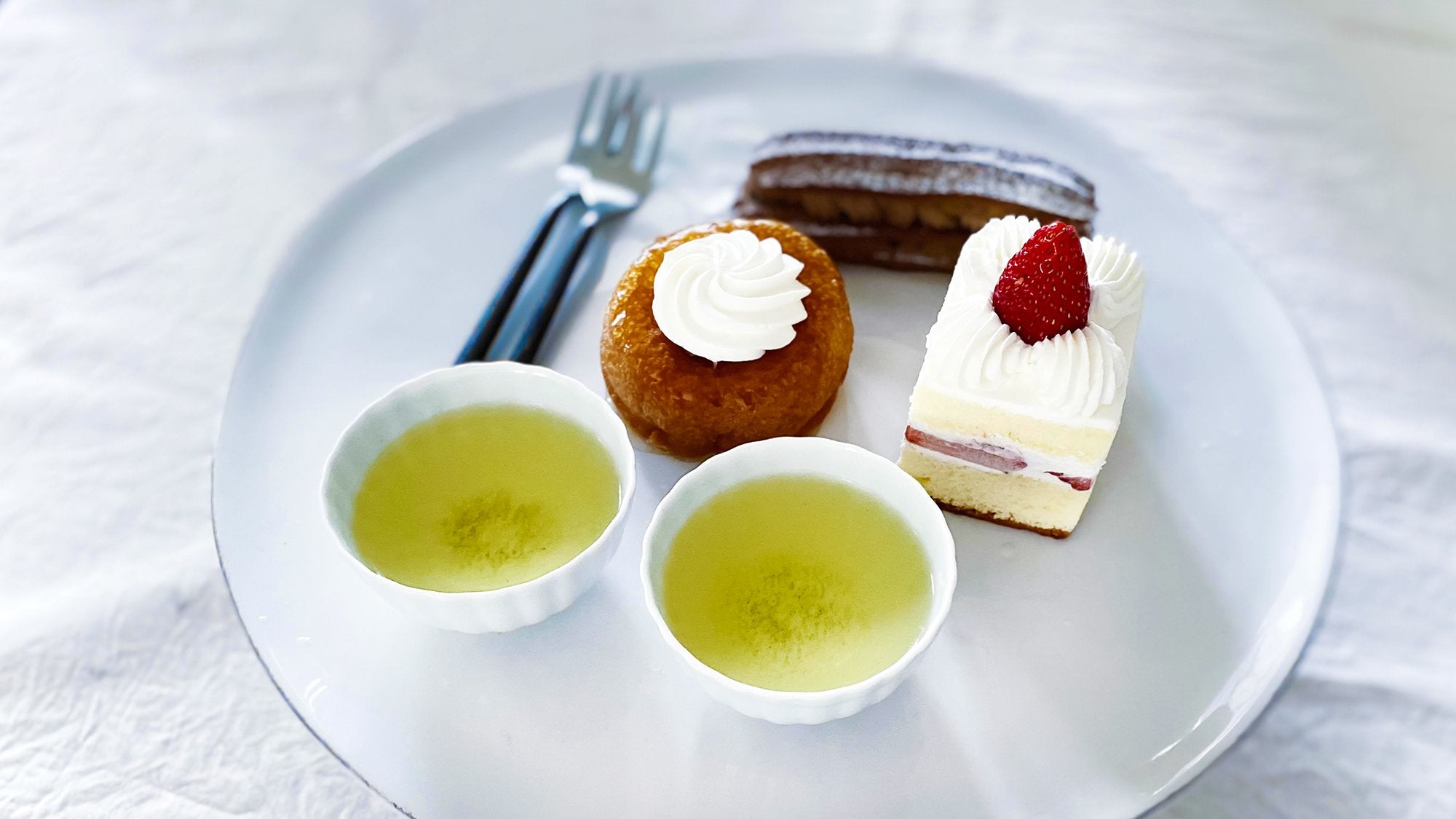 ショートケーキのバターの味わいと「051 松寿」を合わせると、舌の上でじんわりとまろやかな香りが広がり、お茶の奥行きが感じられます。