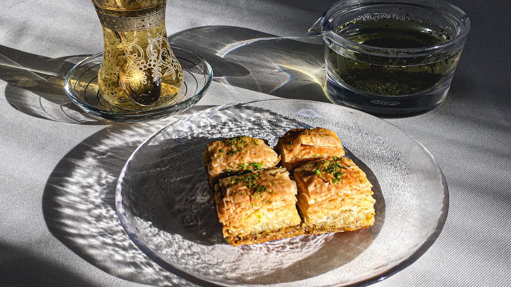 【お菓子とお茶】トルコの魅惑スイーツ。東京ジャーミイハラールマーケットの「バクラヴァ」と「047 釜炒りはるもえぎ」で未知の世界へ