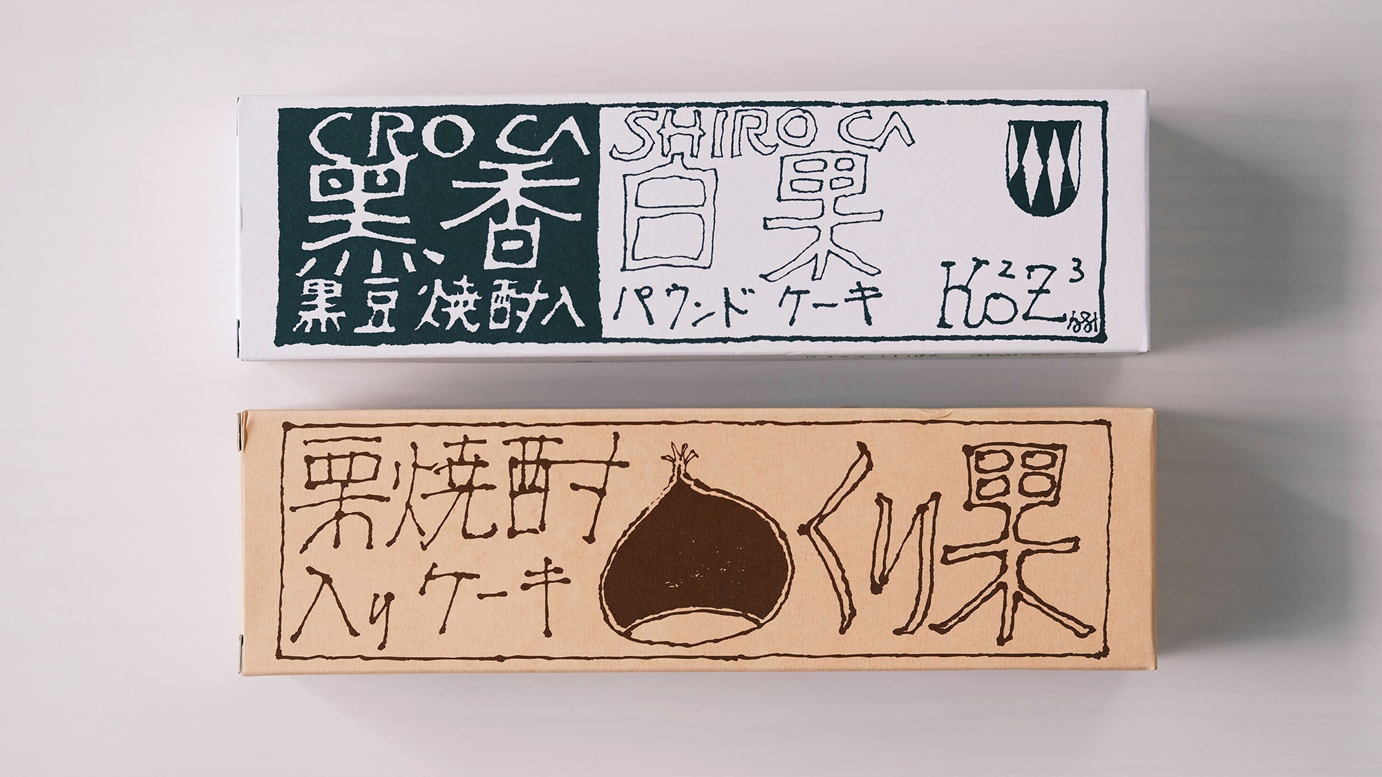 「黒香白果(くろかしろか)」は、香ばしい香りの黒豆焼酎に甘い丹波の黒豆が使用されたパウンドケーキ。白い生地に丹波名産品の黒豆を贅沢に使用されています。パッケージもネーミング通りに白と黒。箱のデザインも素敵です。