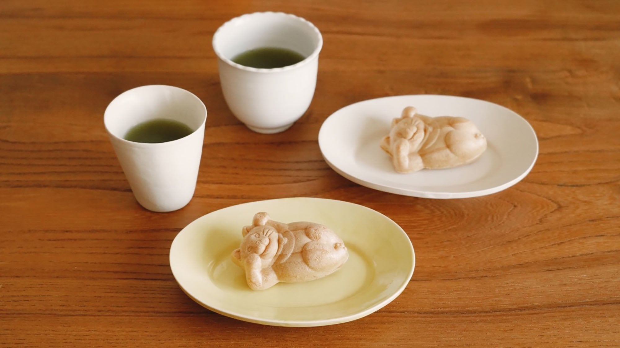 お菓子とお茶|寝転ぶ姿が愛らしい。御菓子司 白樺「たらふくもなか」と「056 やぶきた 臼杵」