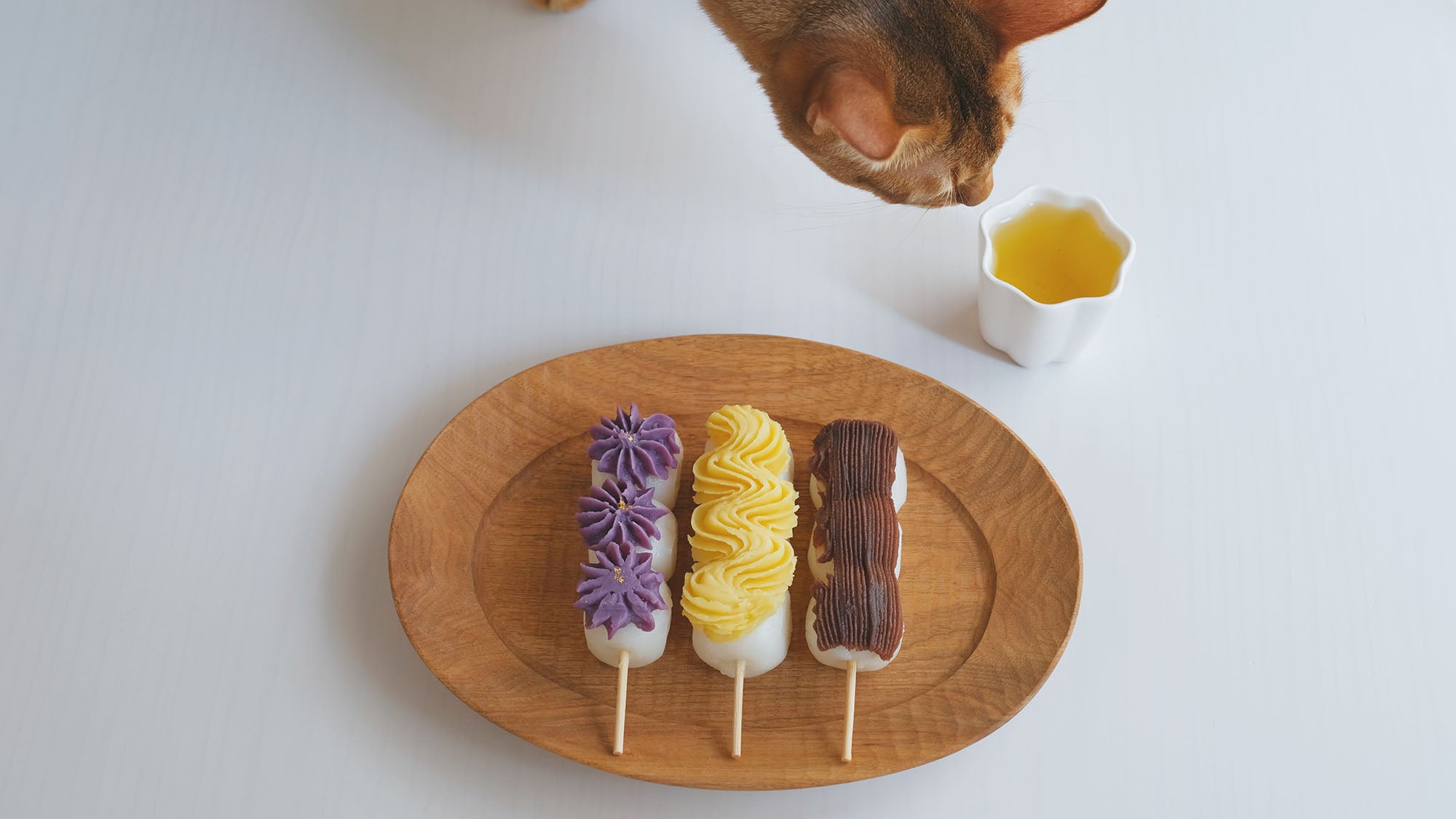 猫はお茶もお団子も食べれないはずですが、近づいてきてしばらく匂いを嗅いでました。
