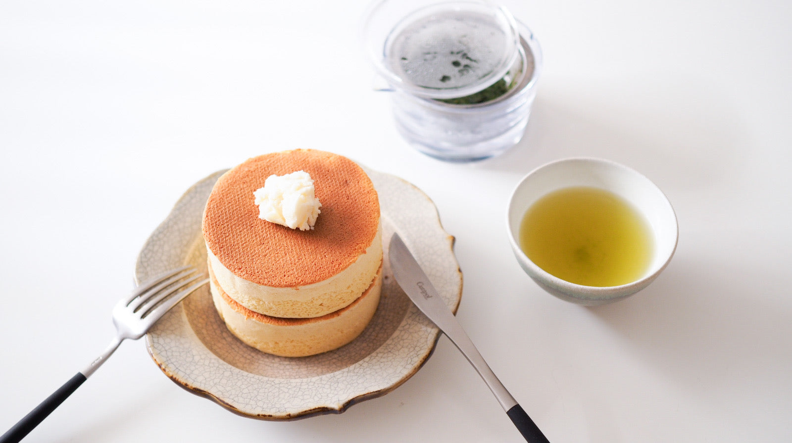 年越し・お正月を過ぎ、通常の生活に戻り始めた1月。味わいも素材も体に優しい厚焼きホットケーキと爽やかなお茶で小さな幸せを感じながら、少しのんびり過ごしてみてはいかがでしょうか。