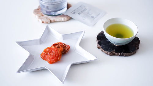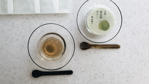 お菓子とお茶|夏は涼菓と水出し茶。都松庵「南高梅ゼリー」と「037 つゆひかり 大山」