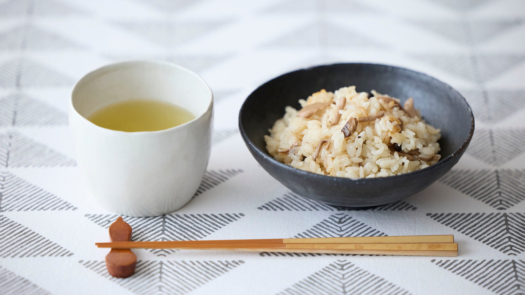 季節の旨みたっぷりのきのこの炊き込みご飯と組み合わせるなら、香りがしっかりと立ち上るように高温で淹れるのが◎。