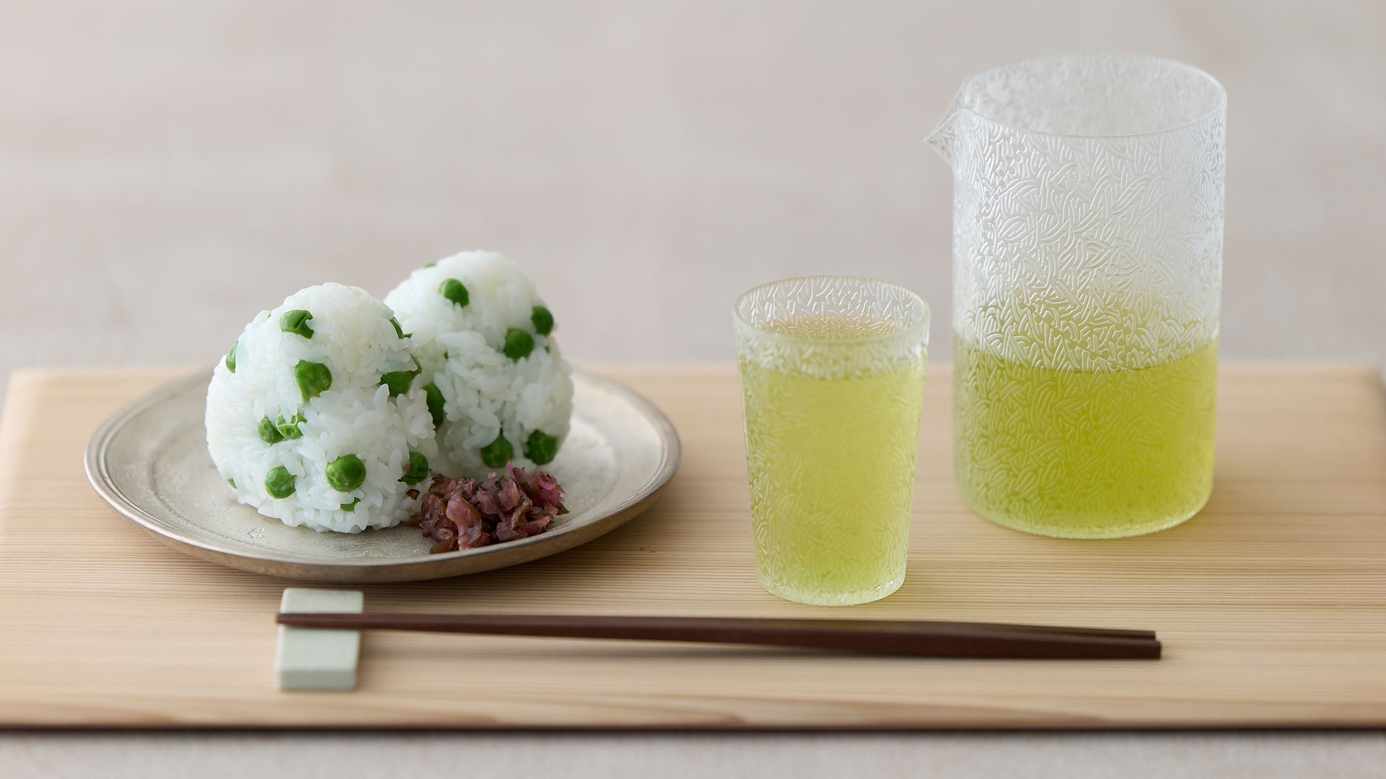 「055 つゆひかり 武雄」と豆ご飯のおにぎりで旬を味わう、春のレシピ。