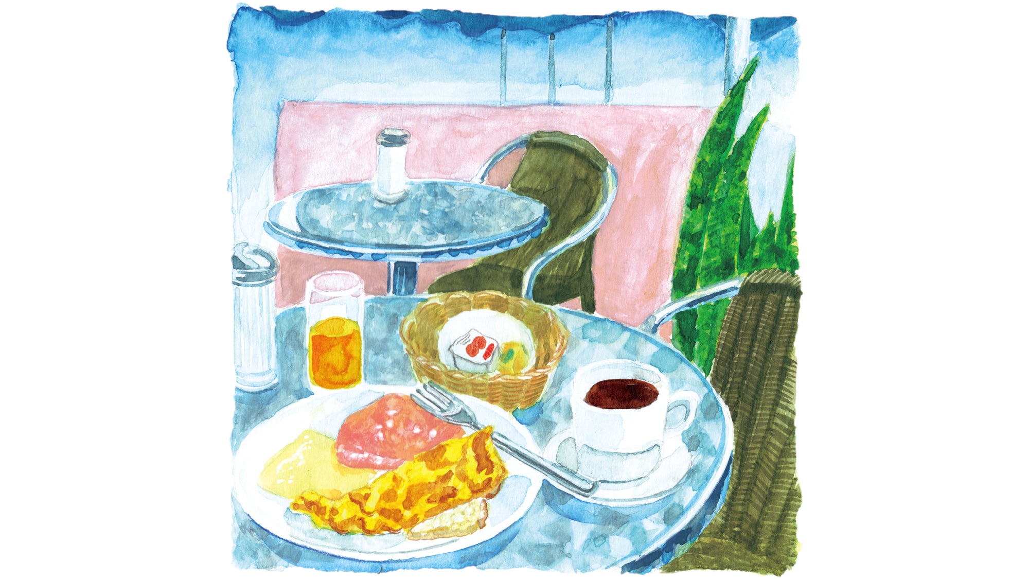 ナイフとフォークで薄っぺらい卵焼きを切りわけて外で食べる朝ごはんがやたらにおいしくって、帰国してもしばらく真似して作っていたのを思い出す。あのお皿には1日の始まりへの安心感があった。