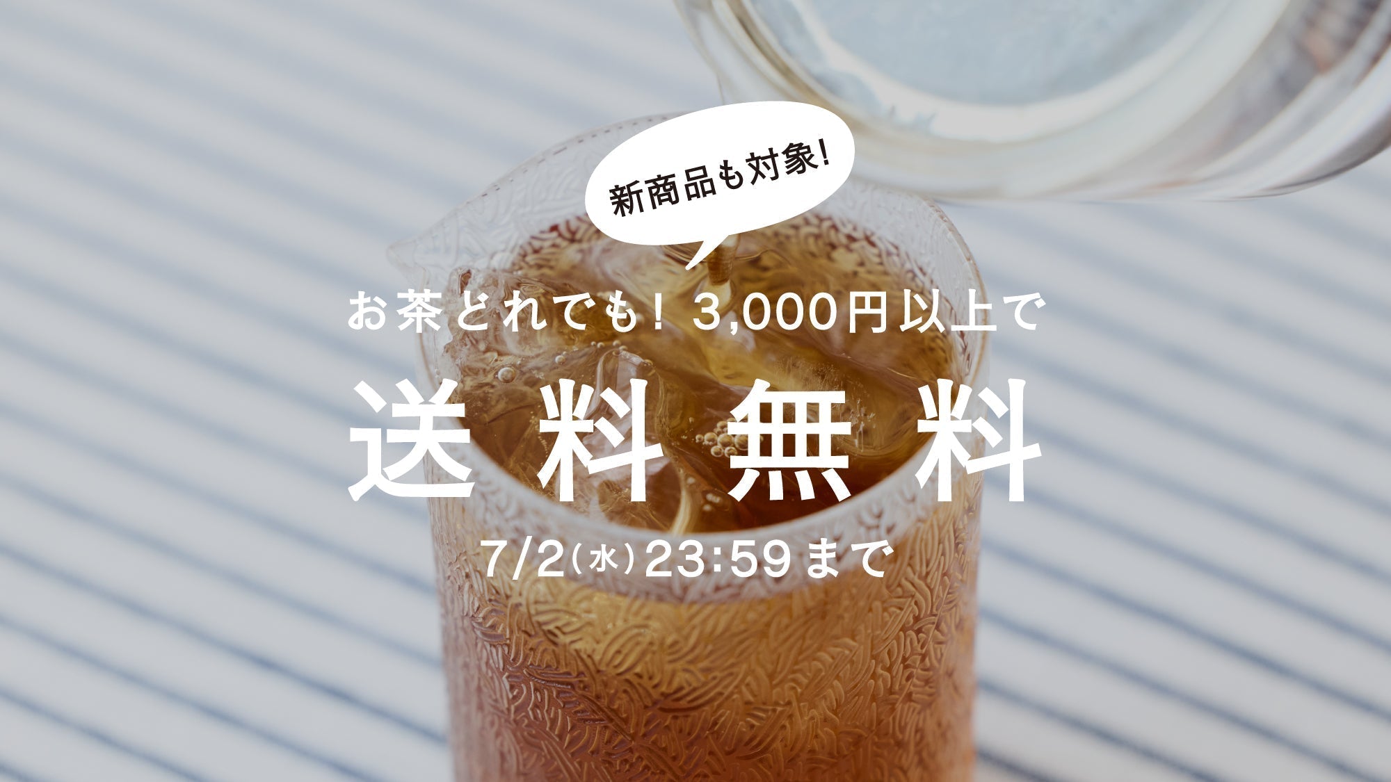7月1日(火)8:00〜2日(水)23:59の期間限定で、茶葉商品を3,000円(税込)以上お買い上げの際にクーポンコード【 2507TEA 】を入力いただくと、送料無料でお届けいたします!(※通常は6,000円以上で送料無料)