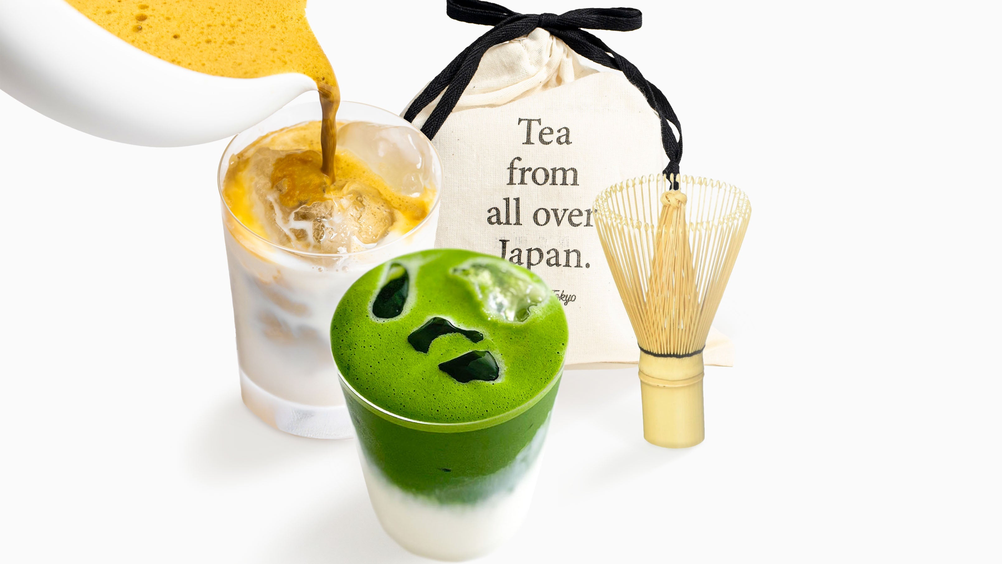 爽やかな有機抹茶と、香ばしさが広がるほうじ茶パウダーを、オリジナルのコットンバッグとともにお届けします。茶筅付きのセットのほか、茶筅なしのセットもご用意しており、用途やお好みに合わせてお選びいただけます。
