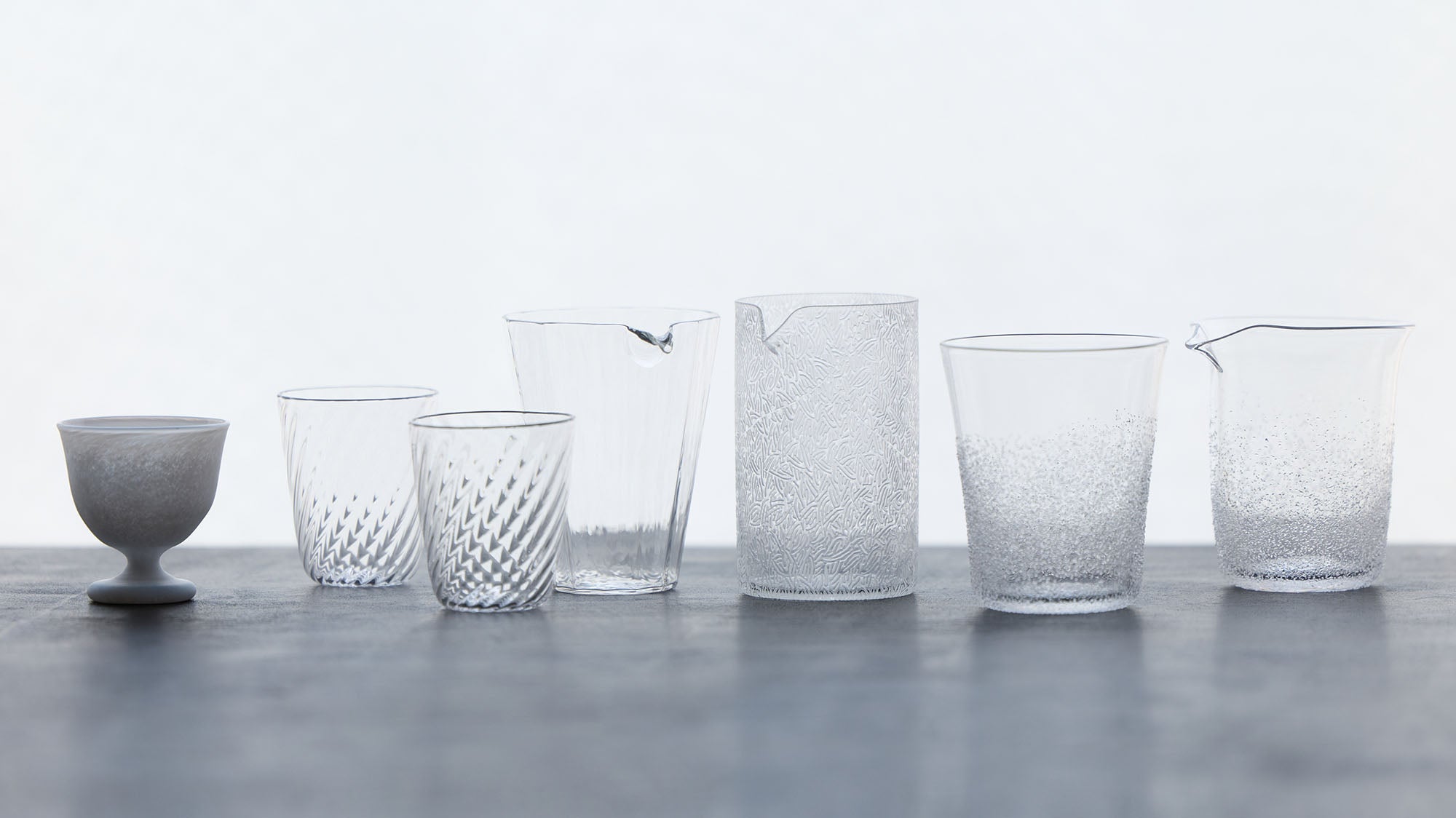 やわらかな陽の光が差し込む朝。手に取るのは、涼やかなガラスの器だ。周囲の光を取り入れて境界を曖昧にしているそれに目覚めの一杯を注げば、水面はまぶしく反射してきらめき、眼の奥がじんわりと刺激され、体はすうっと覚醒してゆく。