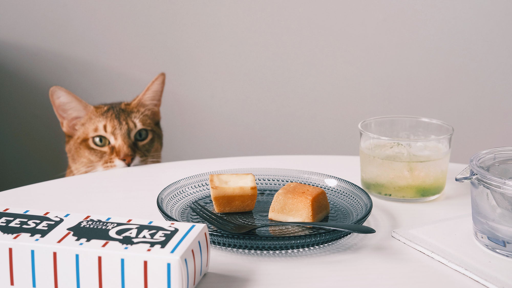 お菓子とお茶(と猫)|銀座生まれ、銀座育ち。資生堂パーラー「チーズケーキ」と「001 はるもえぎ」を氷出しで