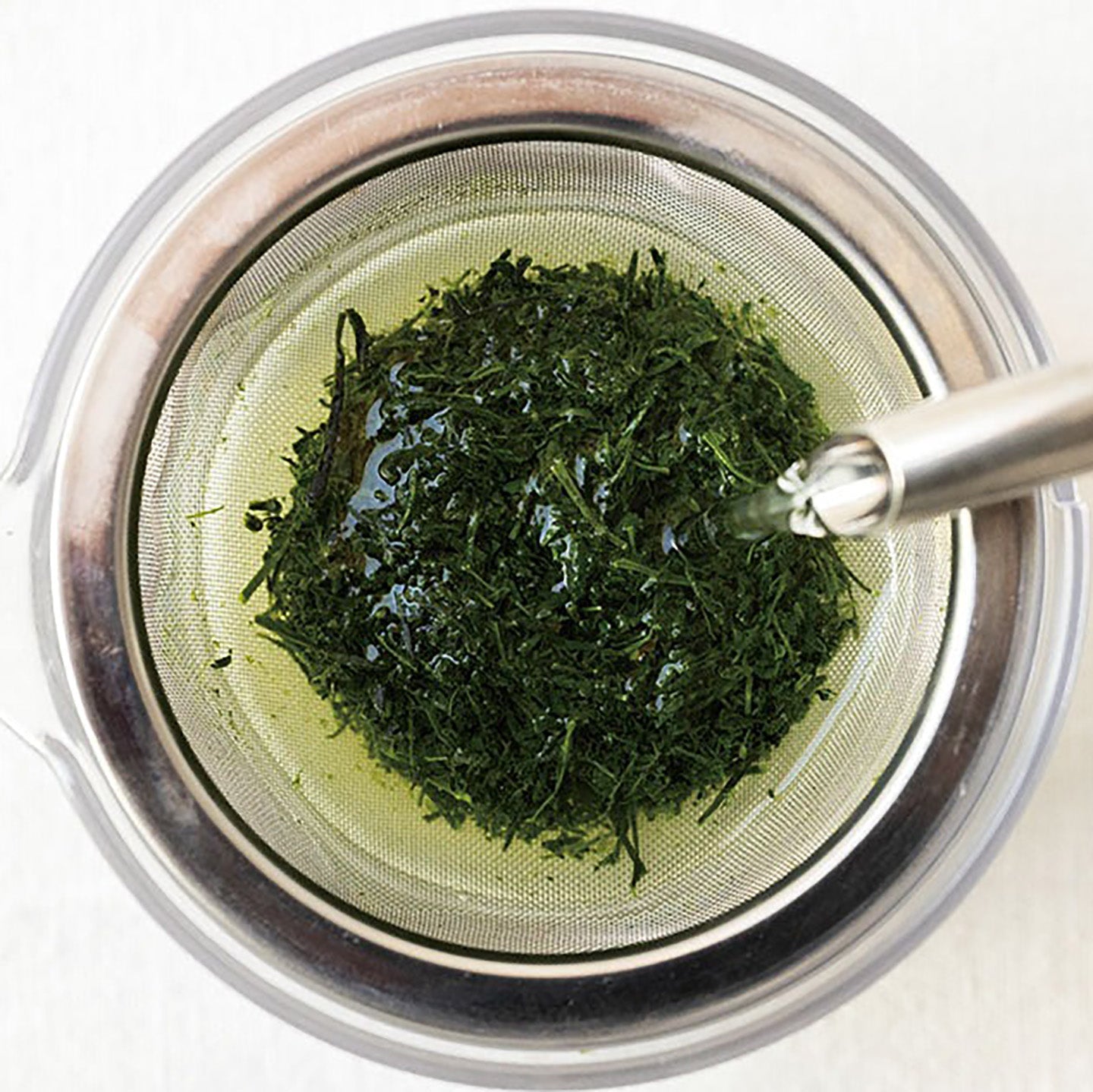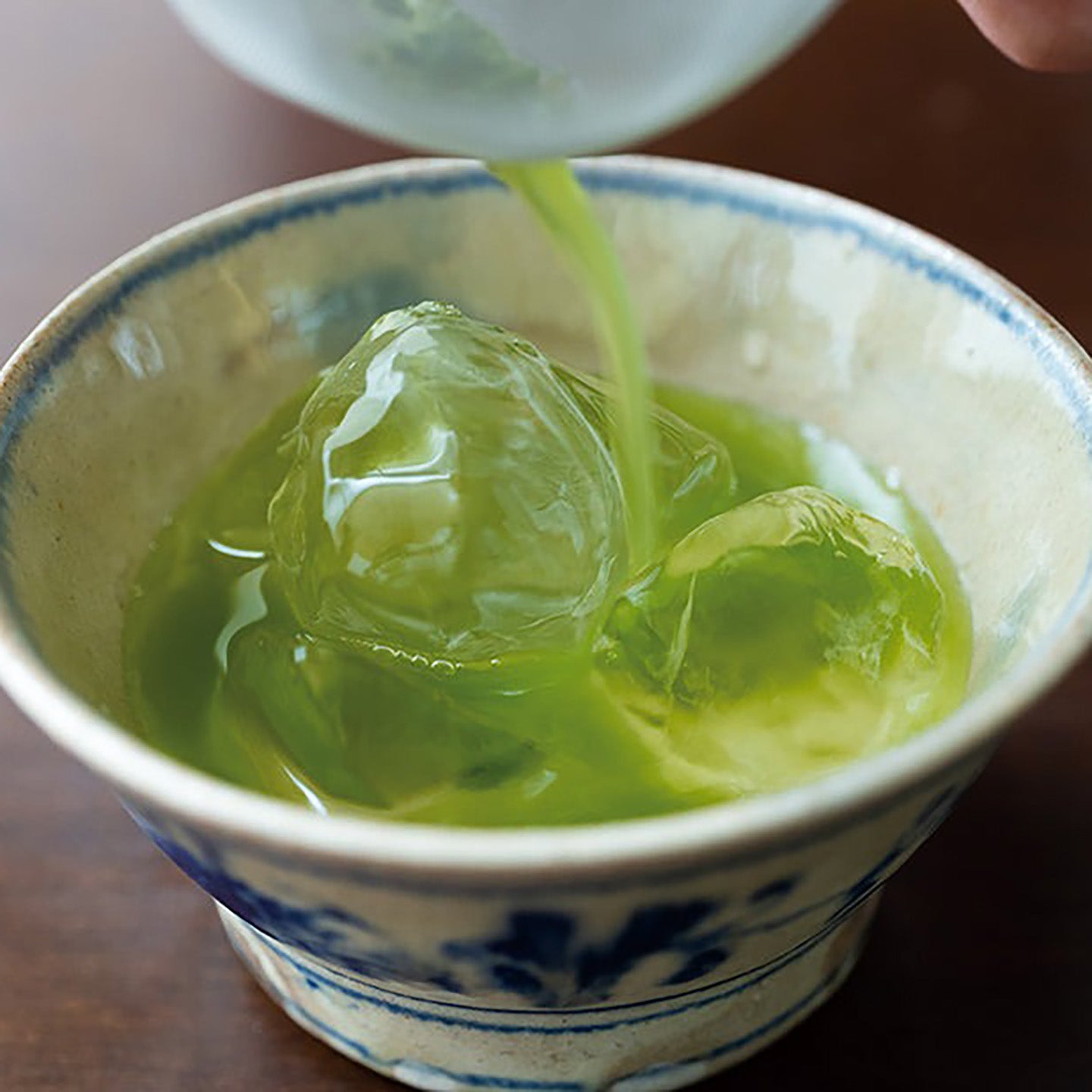 海苔のような濃厚な旨味と青い香りの『020 さえみどり』は和菓子との相性がばっちり。柏餅のさわやかな香りとあんこの甘みは、特にバランスのいい組み合わせです。
