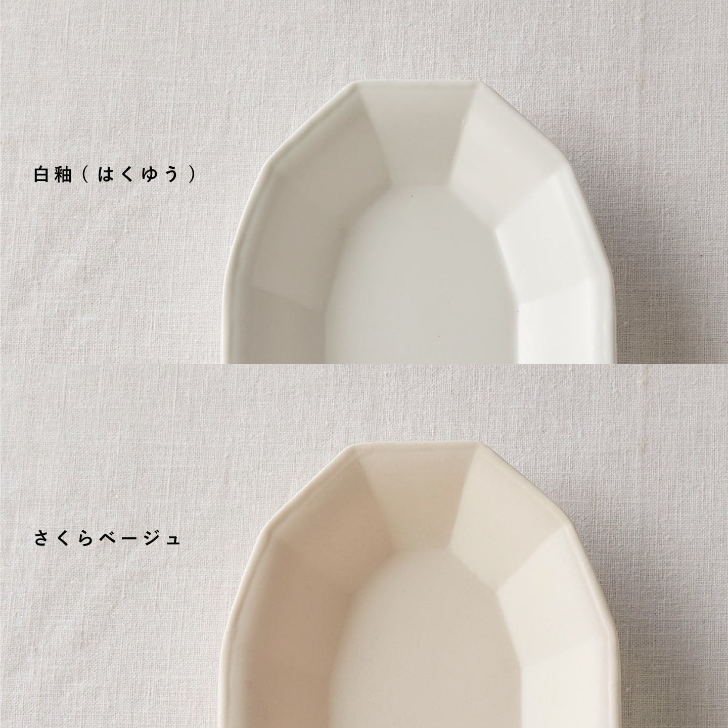 この「オーバル面取鉢」は、使いやすいオーバルタイプですが、深さがあることで更に使い方が広がりますよ。「貝がら小皿」同様、白釉とさくらベージュの二色展開です。