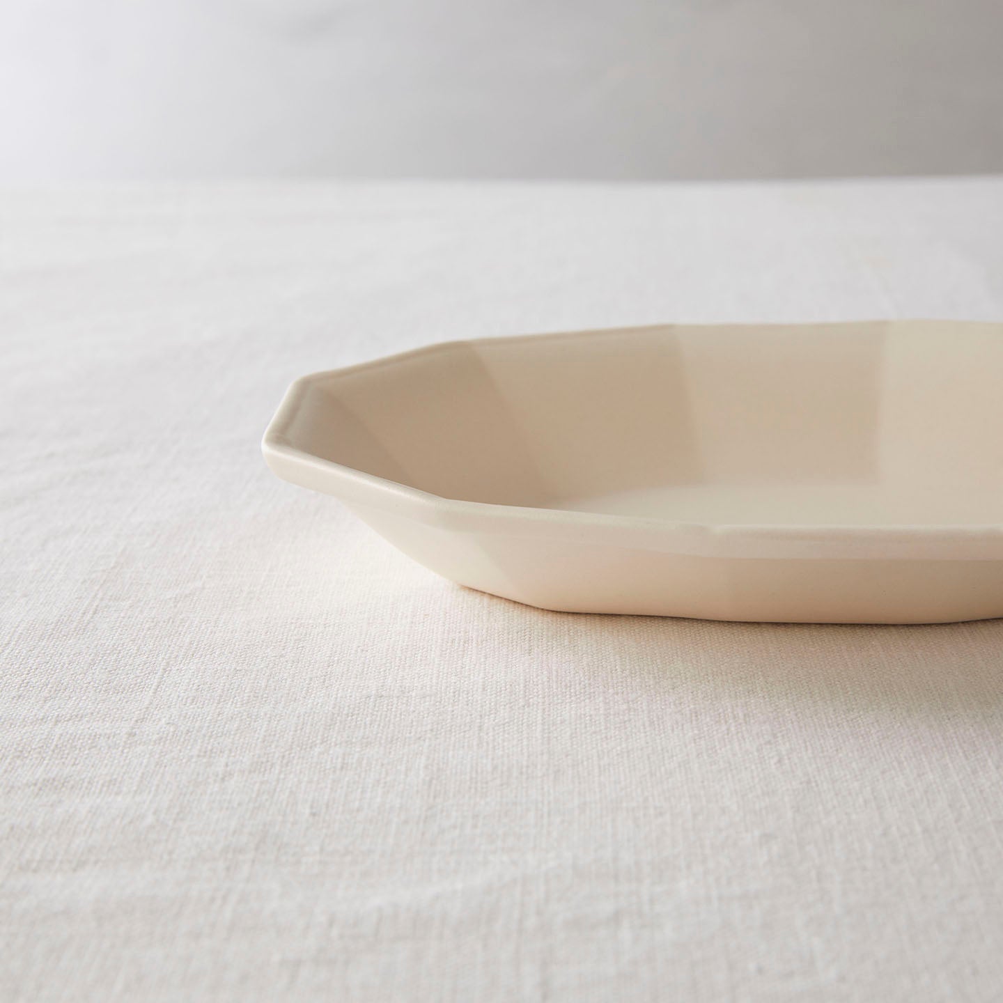 面取りされてシャープな印象がありつつも、ふちが膨らんでいたり、ややアールがかかっていたりと細部に宿る柔らかさが全体の雰囲気を和らげているのかも。食器棚に置いている時も、食卓に並ぶ時も、その表情は変わらず優しいのです。
