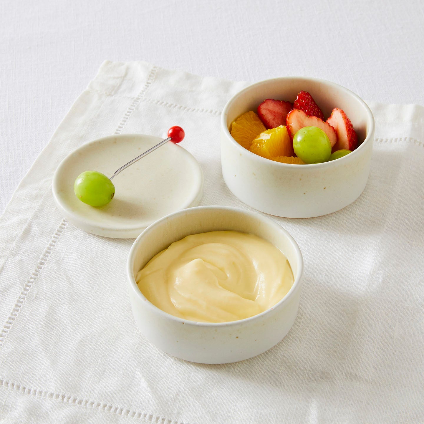「youhen cream」は、かわいく使いたい。カスタードクリームと季節の果物でディップしながらおやつの時間。