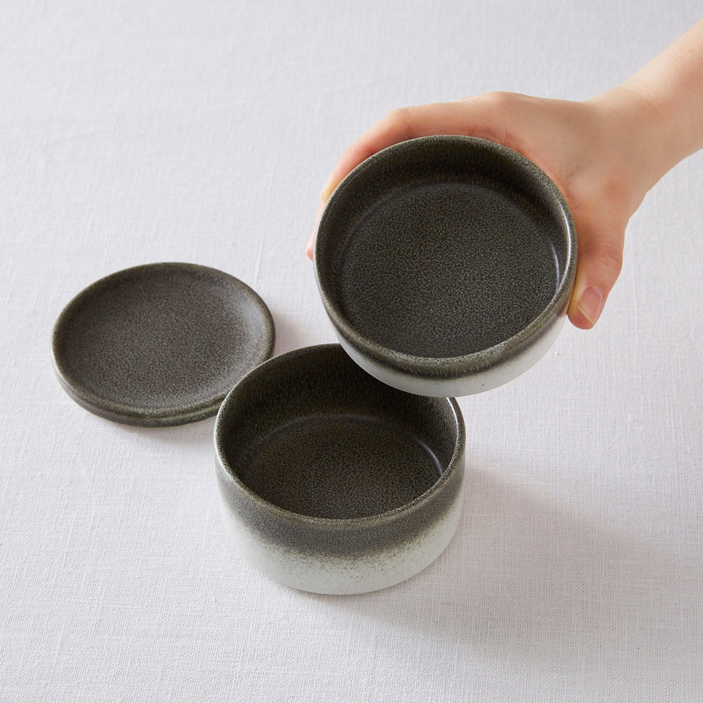 ・ひとつひとつ、手作業で型から形を起こしています。釉薬の加減や色合いなど全て同じものではございません。それぞれの表情をお楽しみください。