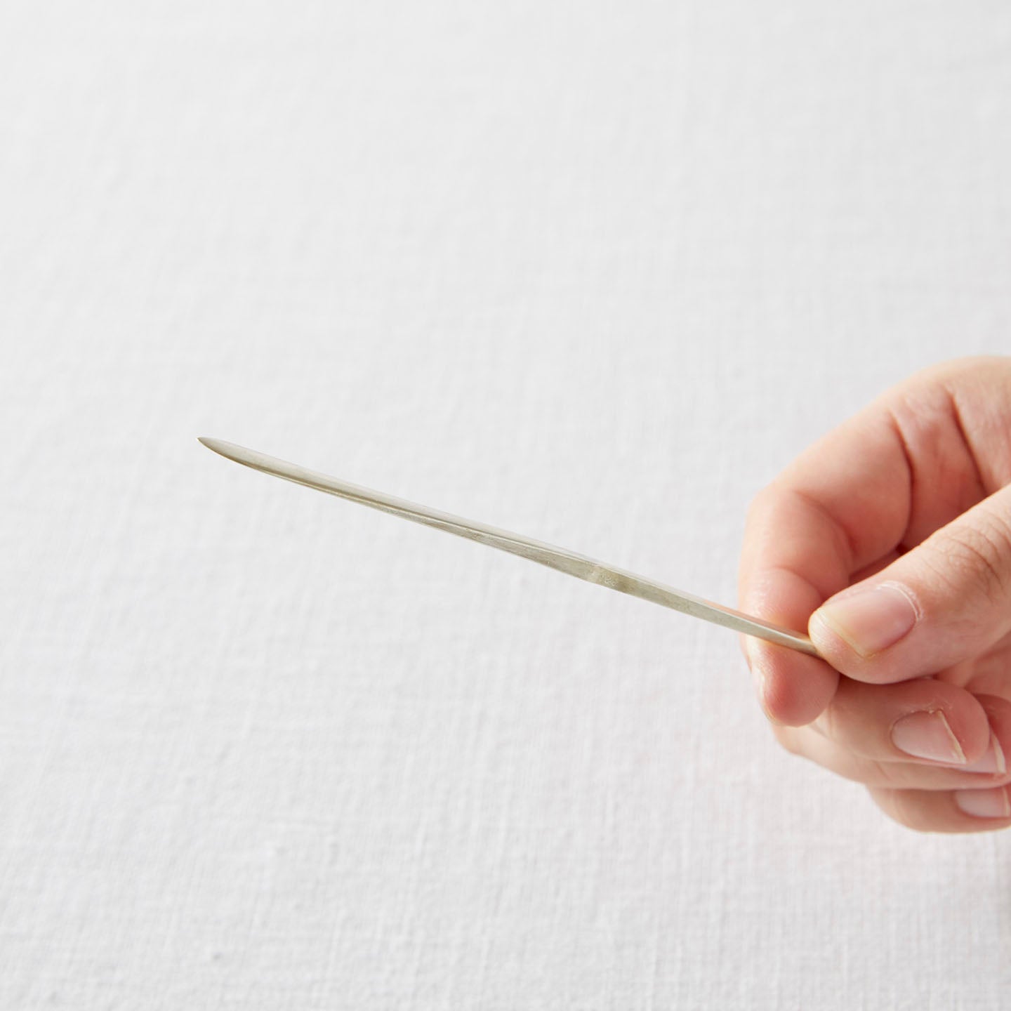三輪周太郎(みわ・しゅうたろう)さんの作る銀製カトラリーは小さくて和菓子にぴったり。シンプルでかわいらしい印象がありますが、ディテールをよくよく見るとその仕事の丁寧さに驚かされます。