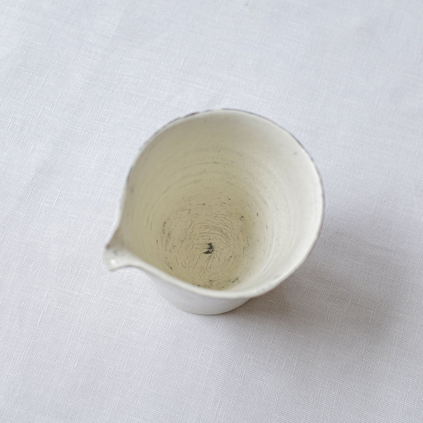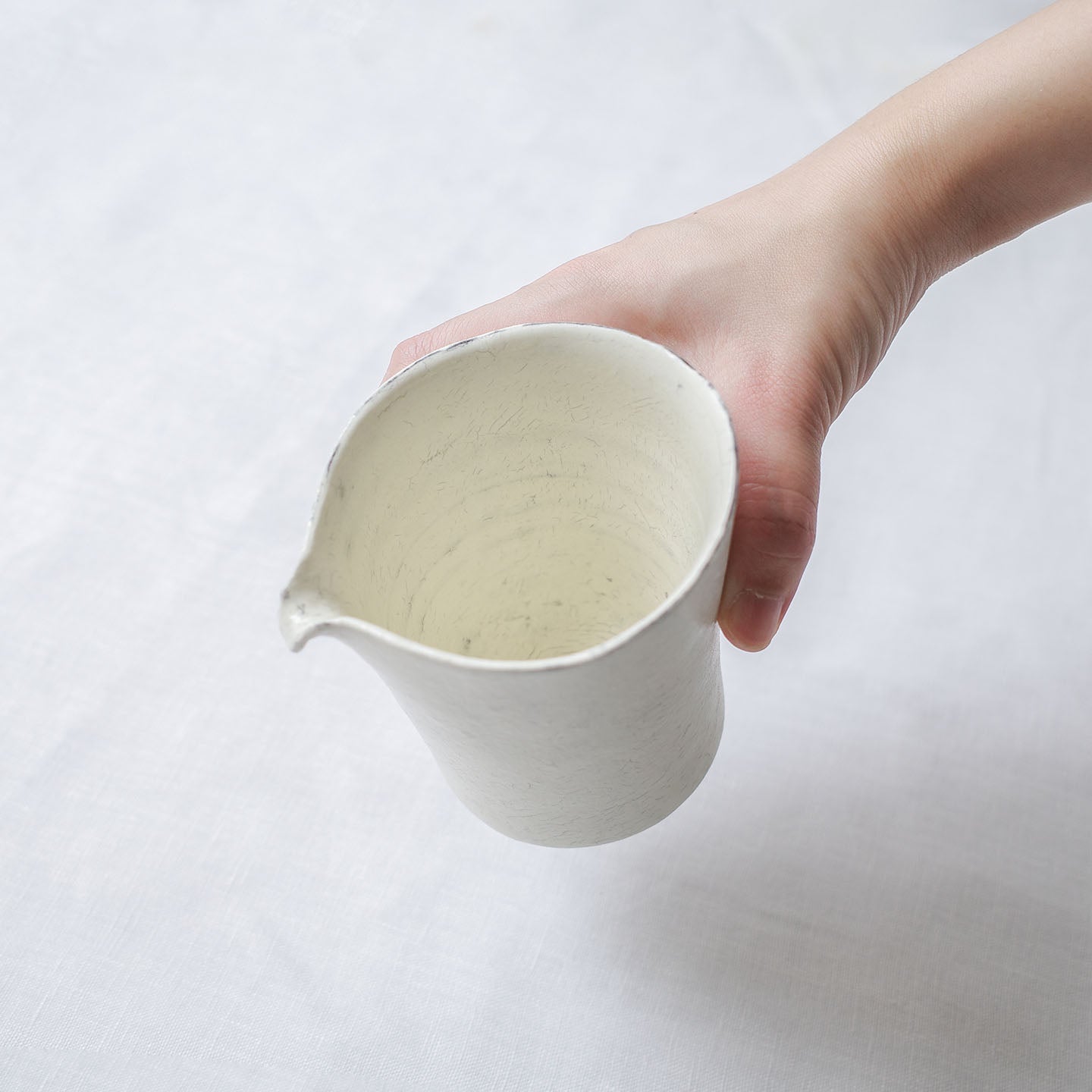 この片口はアウトラインが微かにくびれていて、きっと手の形に馴染むようにこの形にしたのかしら?と思うのですが、口もとの揺れたような切り方とのバランスがとても美しい。