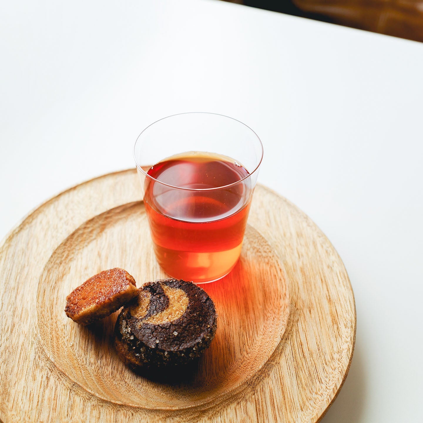 赤い水色が綺麗なアイスティーとクッキーでティータイムを。