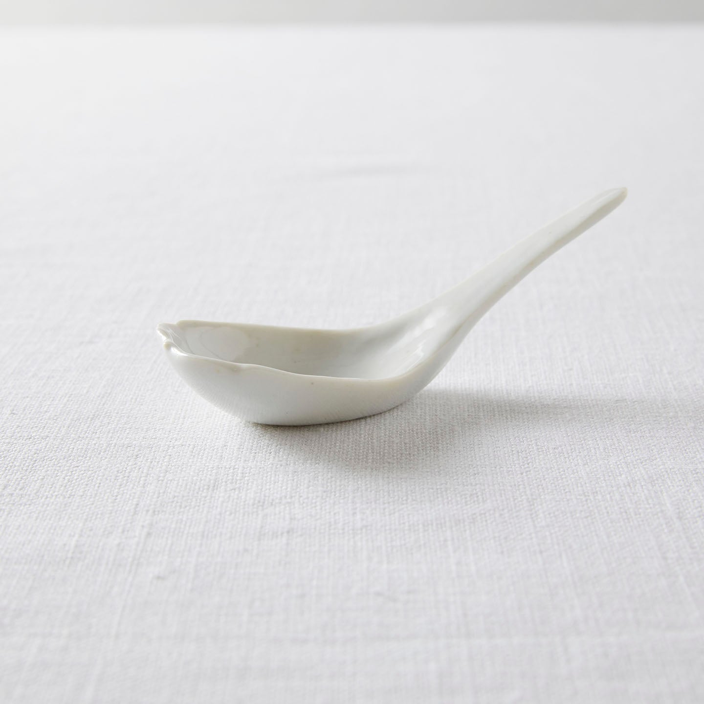 煎茶堂東京では初めてのお取り扱いになる「蓮華」。李朝時代(古い韓国)の器のエッセンスを取り入れている竹下さんの作品は、白磁ながらどこか柔らかく温かい印象があります。手づくりならではのゆがみが愛らしい蓮華です。