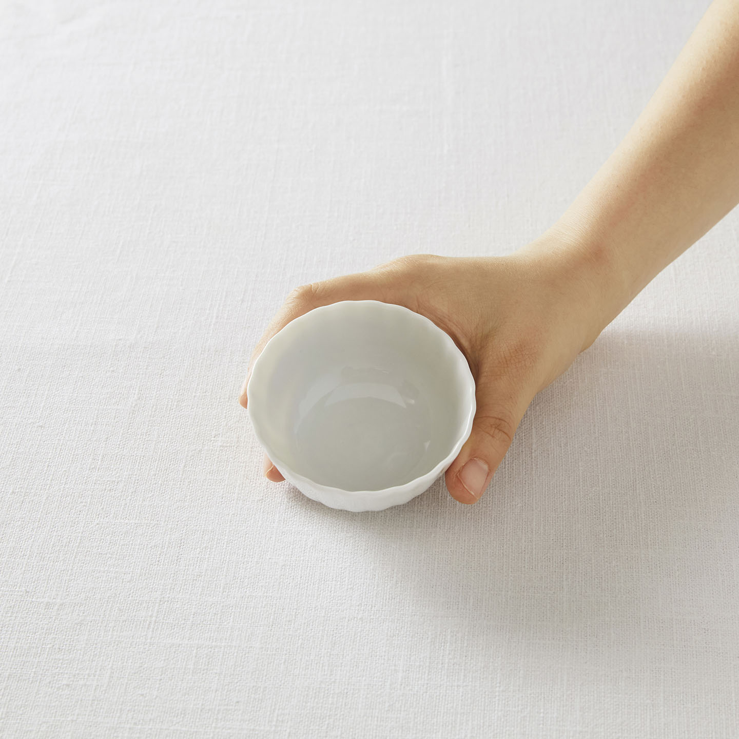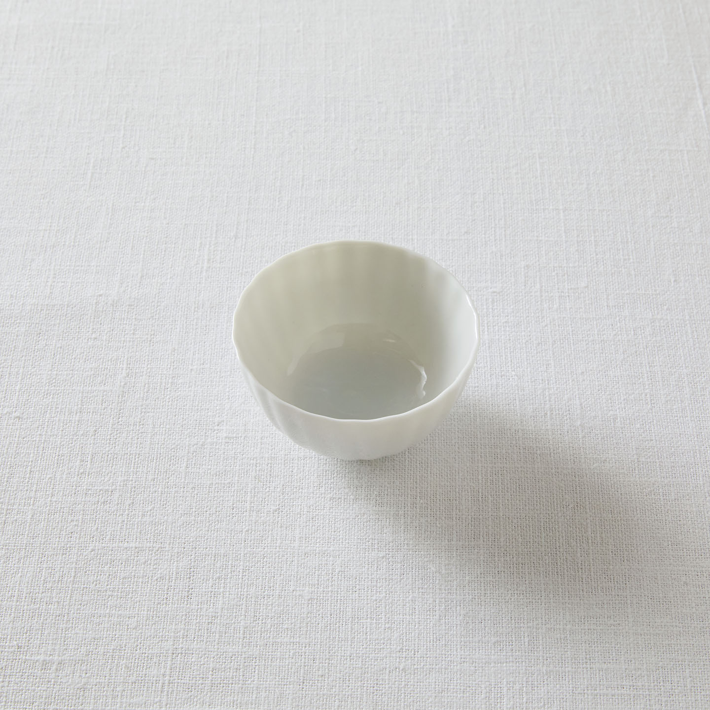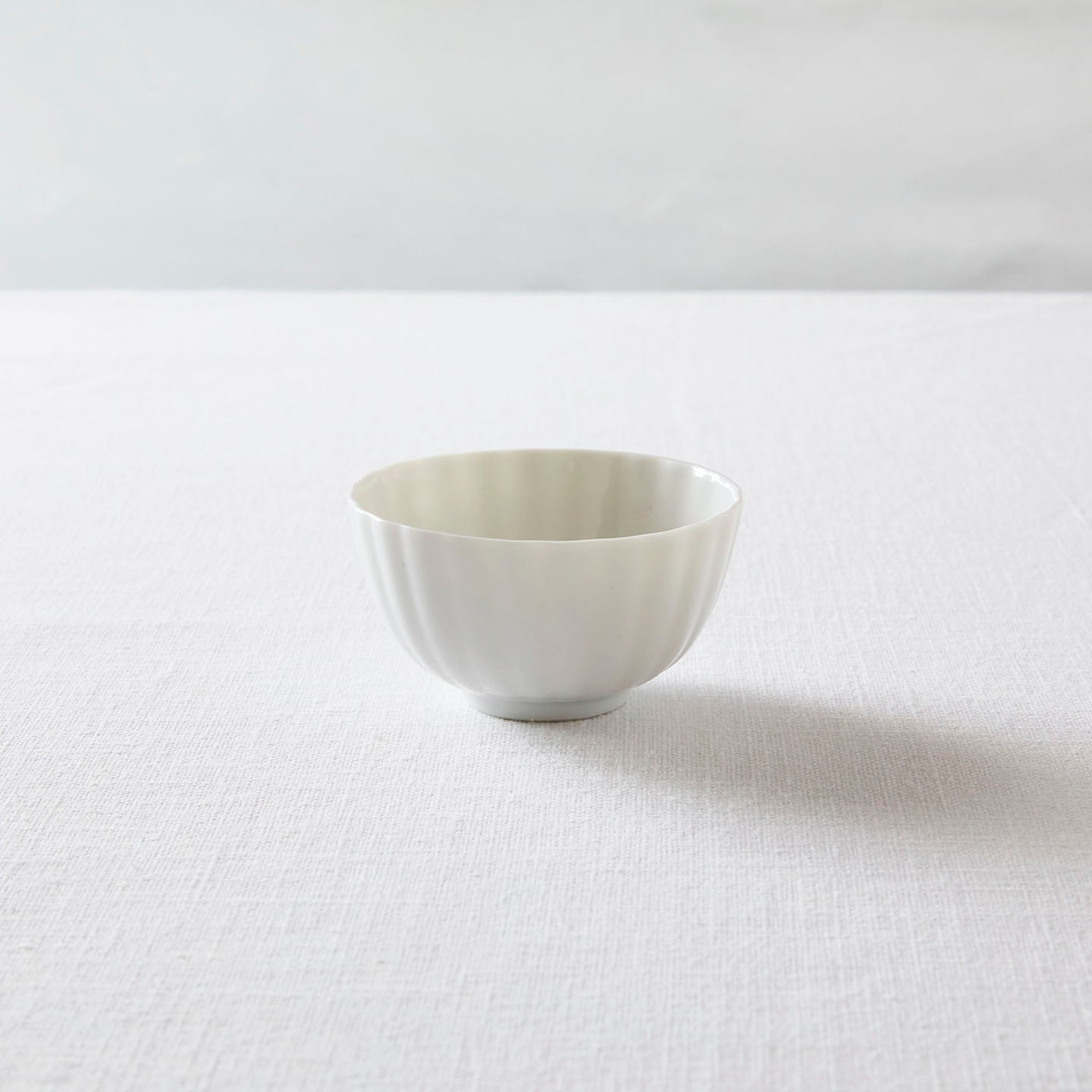 両手のひらで包みたくなるような、なめらかなテクスチャーのティーボウル。なめらかな白い釉薬がお茶の色を映えさせます。