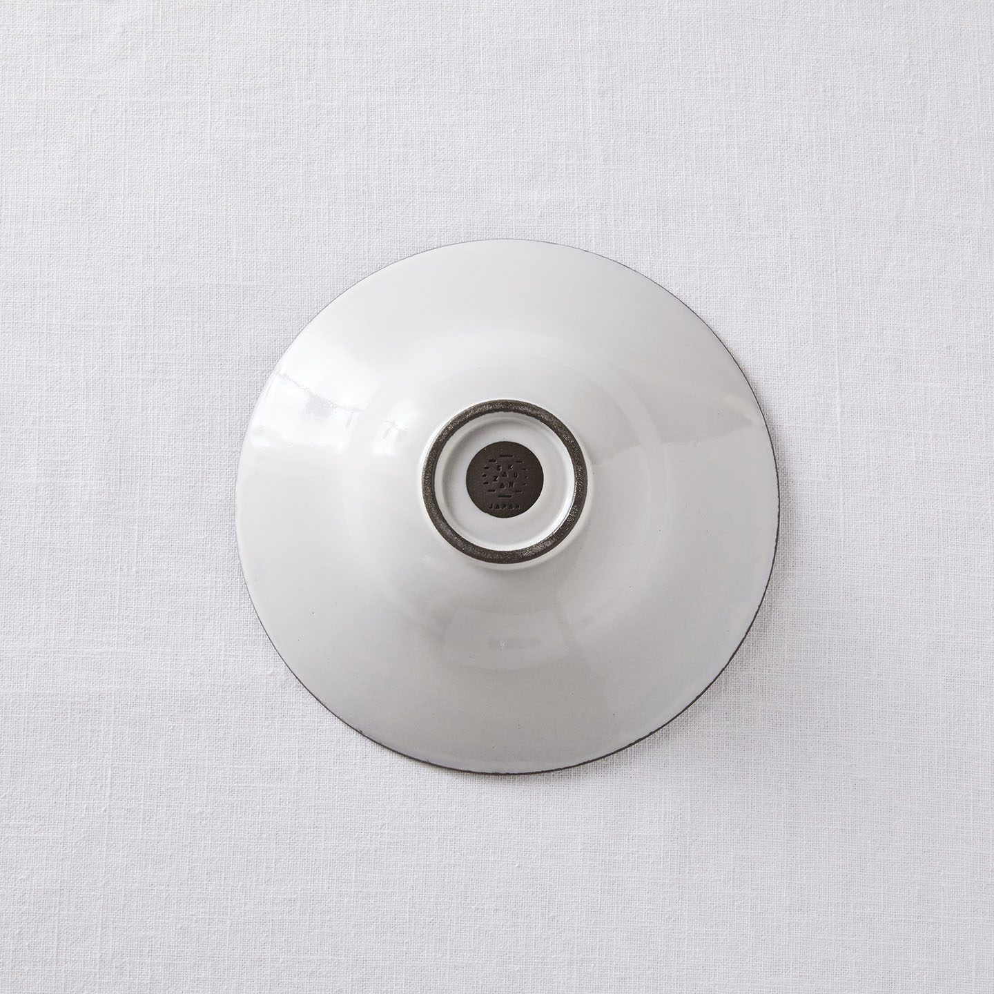 つやのある釉薬とは対象的に、リムの外周は釉薬が付着していないので、焼き物の土そのままを感じられます。エッジのきいたラインと土の感触は手なじみが良い。横から見ると土星の環のようにも見えて、なんだかロマンチック。