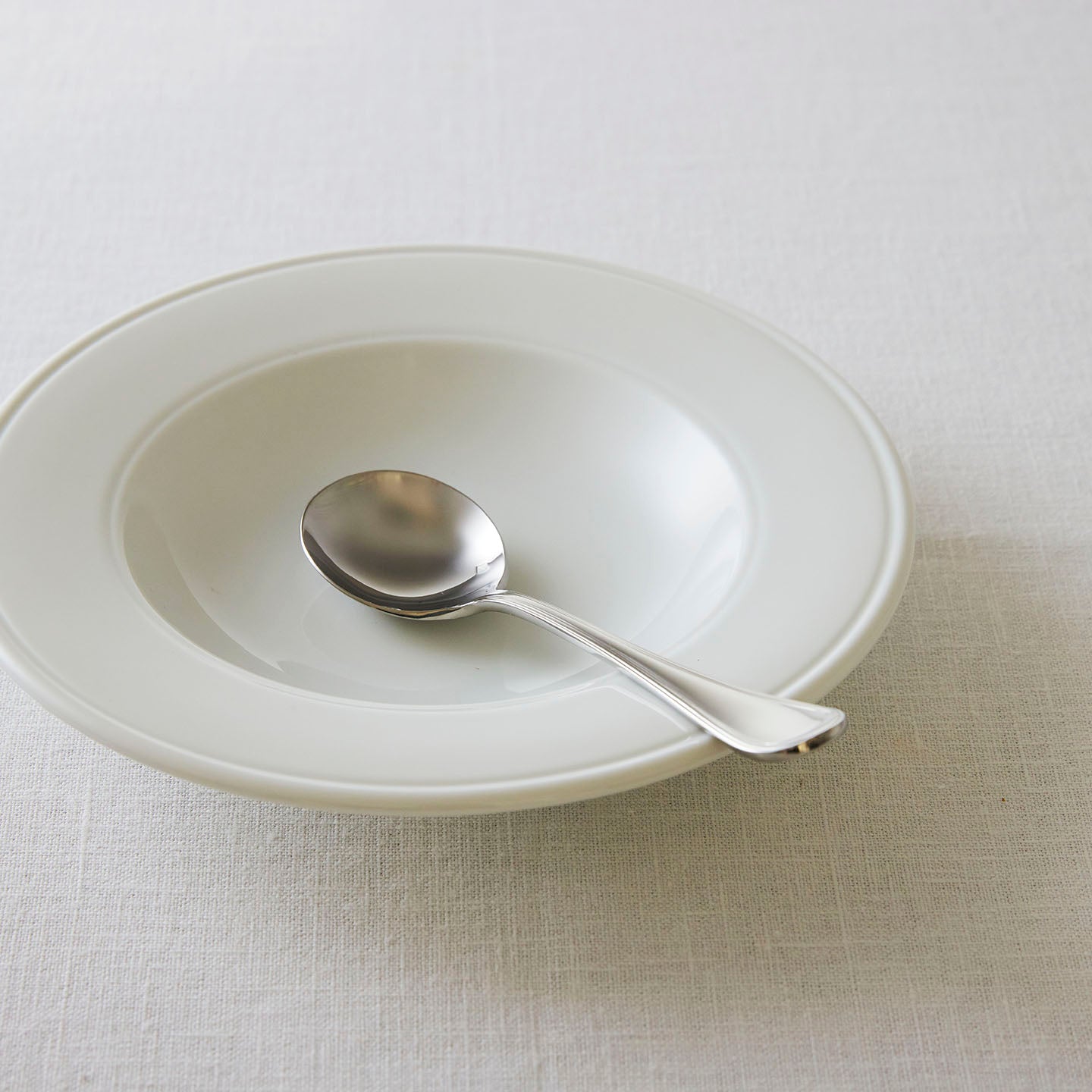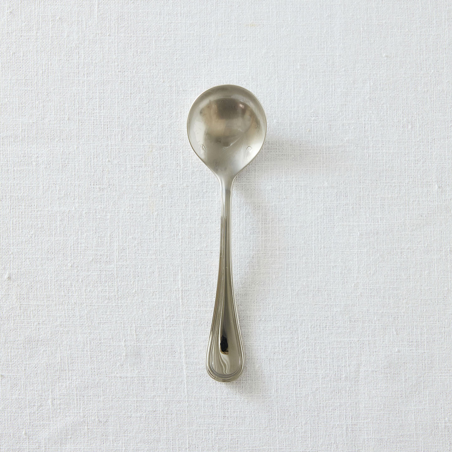 クラシカルなスタイルの「スープスプーン」。スプーンの部分がボウル型になっていて、コンソメスープのようなさらりとしたスープも、ポタージュのようなとろりとしたスープもすくいやすい形状です。