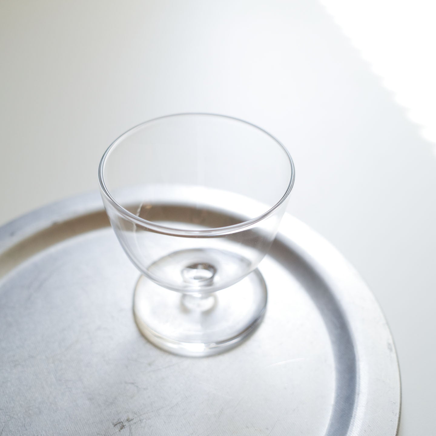 プクッとした形がかわいい脚付ミニグラス。オンラインストアで言うのもなんですが、見て、使ってみるとこのかわいさが分かります。