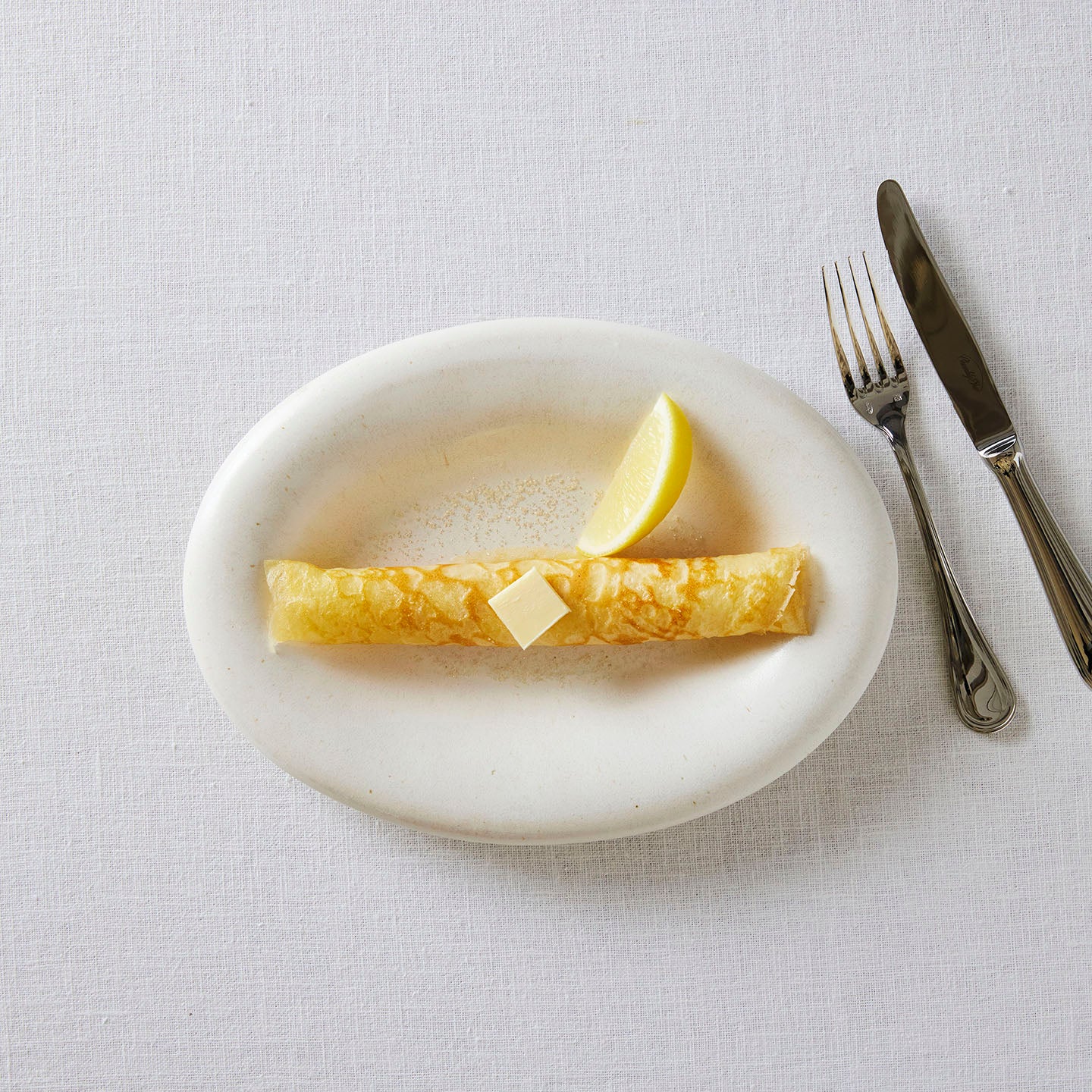 シンプルなクレープにバターとシュガーをふりかけて。レモンの爽やかな香りと酸味がアクセントになって、贅沢な時間を過ごせます。自分へのご褒美時間にぜひお試しを。