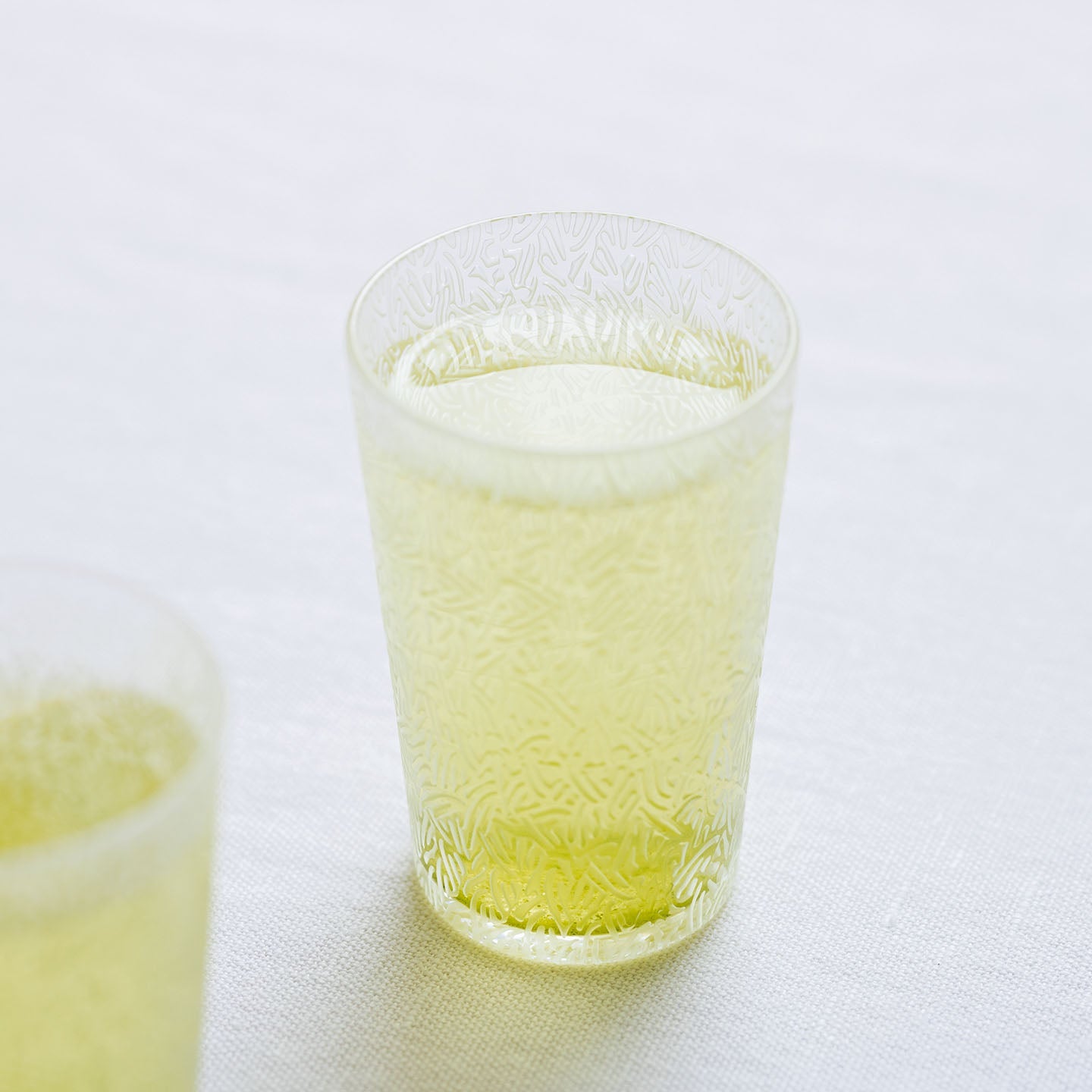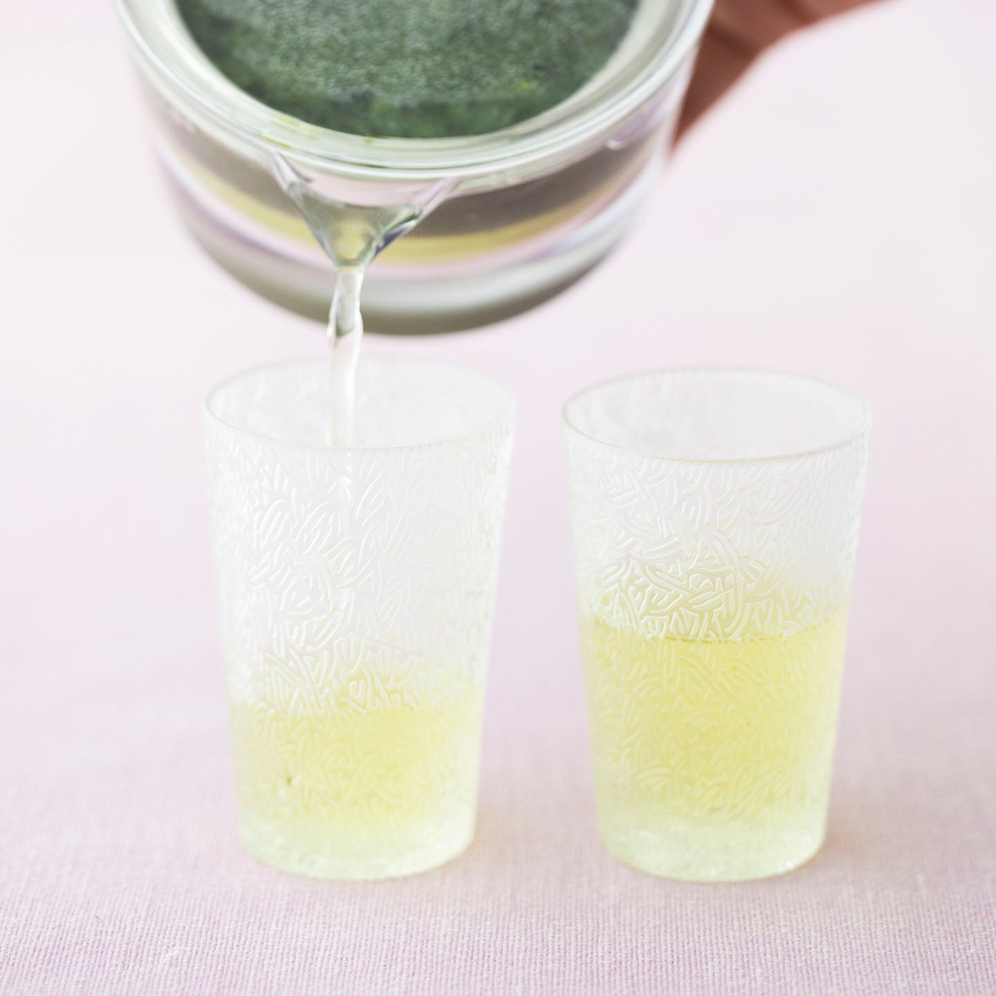 お茶を注ぐとハッとする景色が生まれて、グラスの中の飲み物に表情を与えてくれます。氷を入れて汗をかいたグラスもまた美しい。