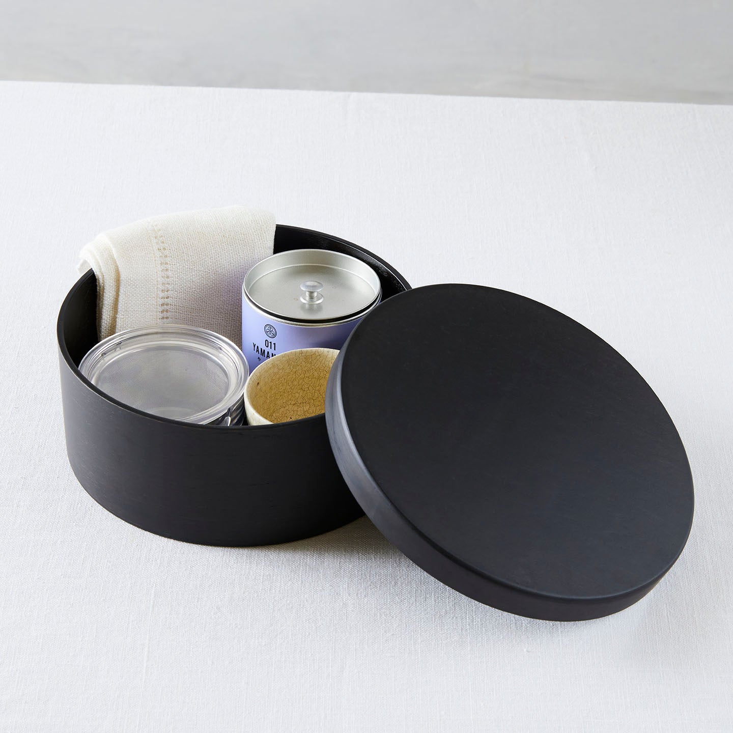 マットな黒が可愛い煎茶堂東京オリジナルカラーのおひつです。 おひつと言いながらもスタイリッシュでミニマルな装いは煎茶堂東京の茶缶や透明急須を入れて、さっと出せるようにお茶道具入れるのも◎。