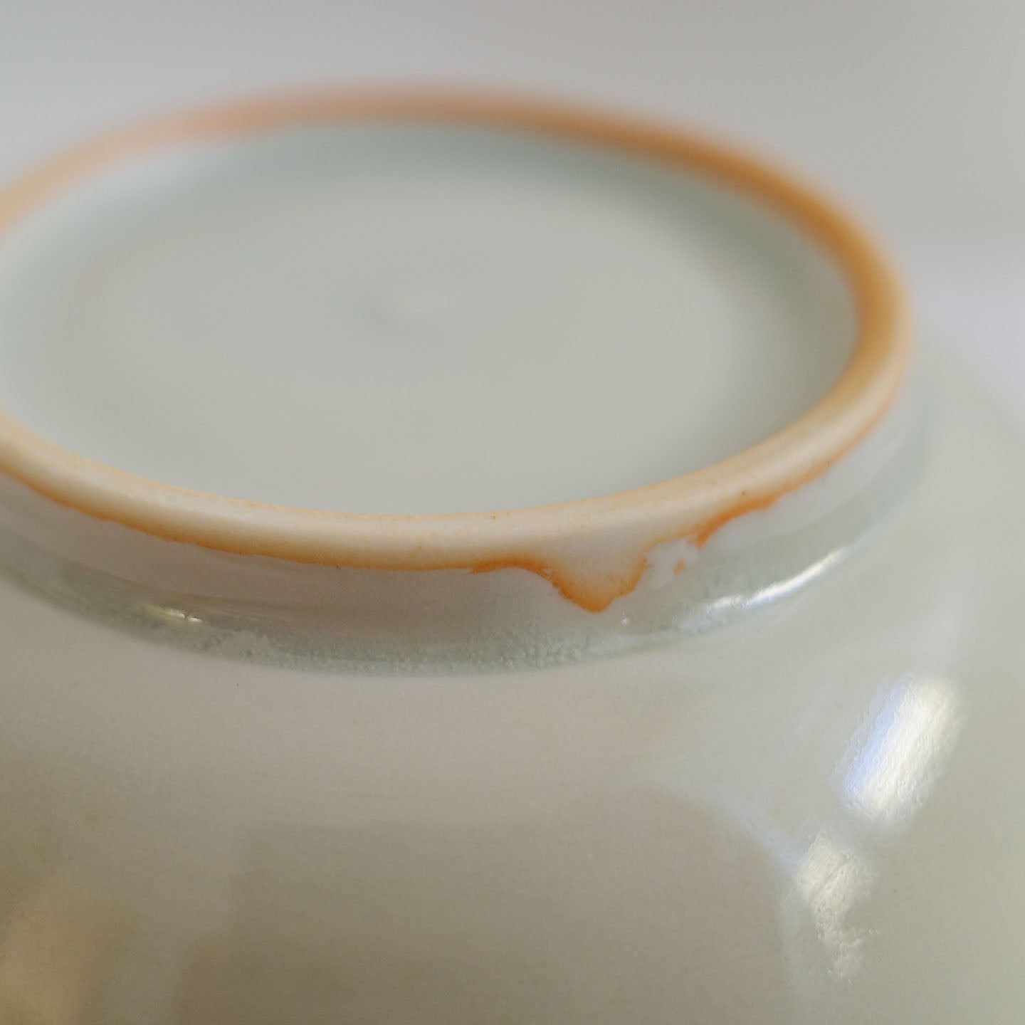 「オレンジになった部分は緋色(ひいろ)と言います。釉薬と土の相性で、出たり出なかったりとあります。釉薬と土の反応でオレンジになり、それも見どころと考えます。」