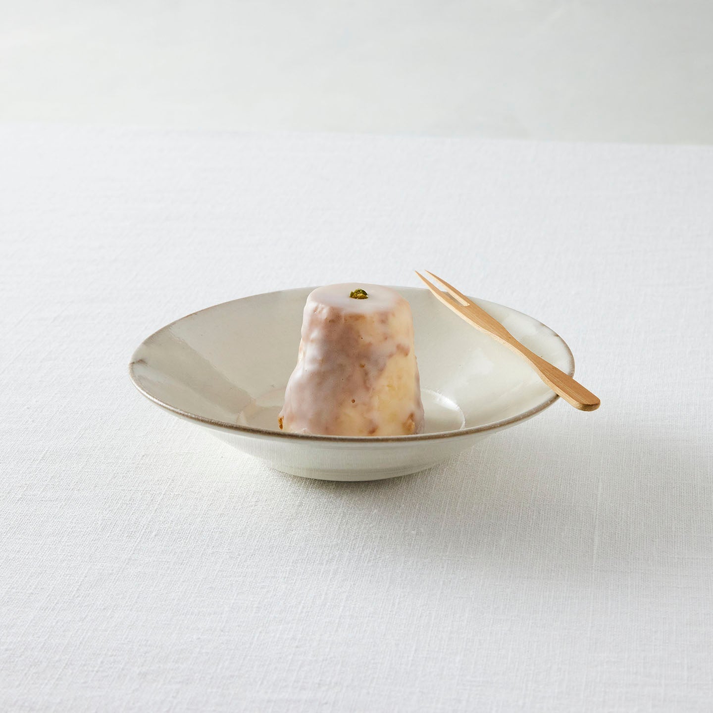 釉薬の色に合わせて白いケーキも、ぴったり。