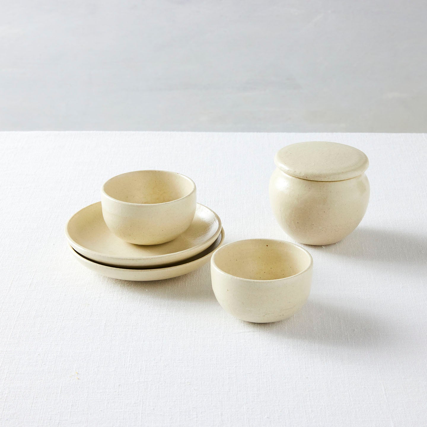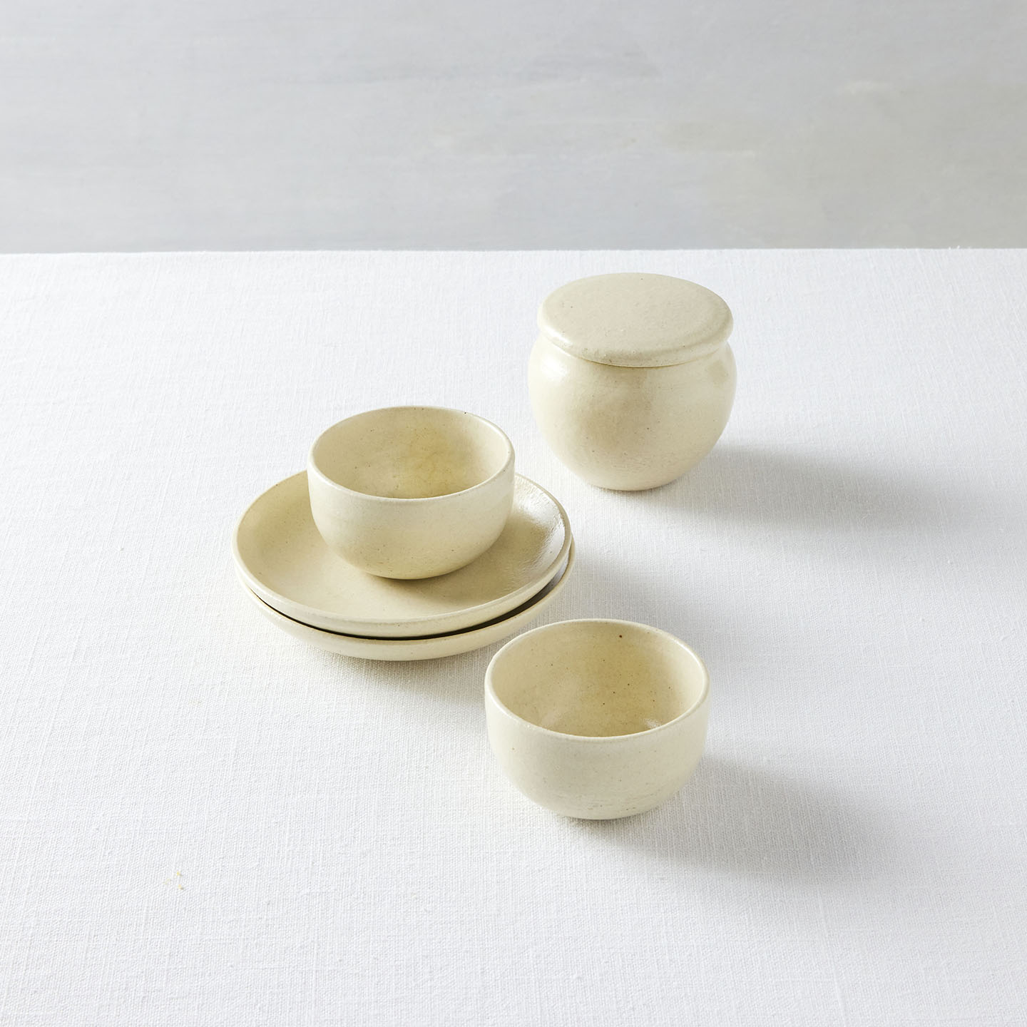 今回の白い器は、「ゆのみ」、小皿のような「おてしょ」、塩や保存食を入れる「蓋物」の3種類です。すべて特別な感情を伴うハレの日の器では無く、使う日を選ばずにどんなものでも許容し、日常生活に溶け込む事をコンセプトに作りました。