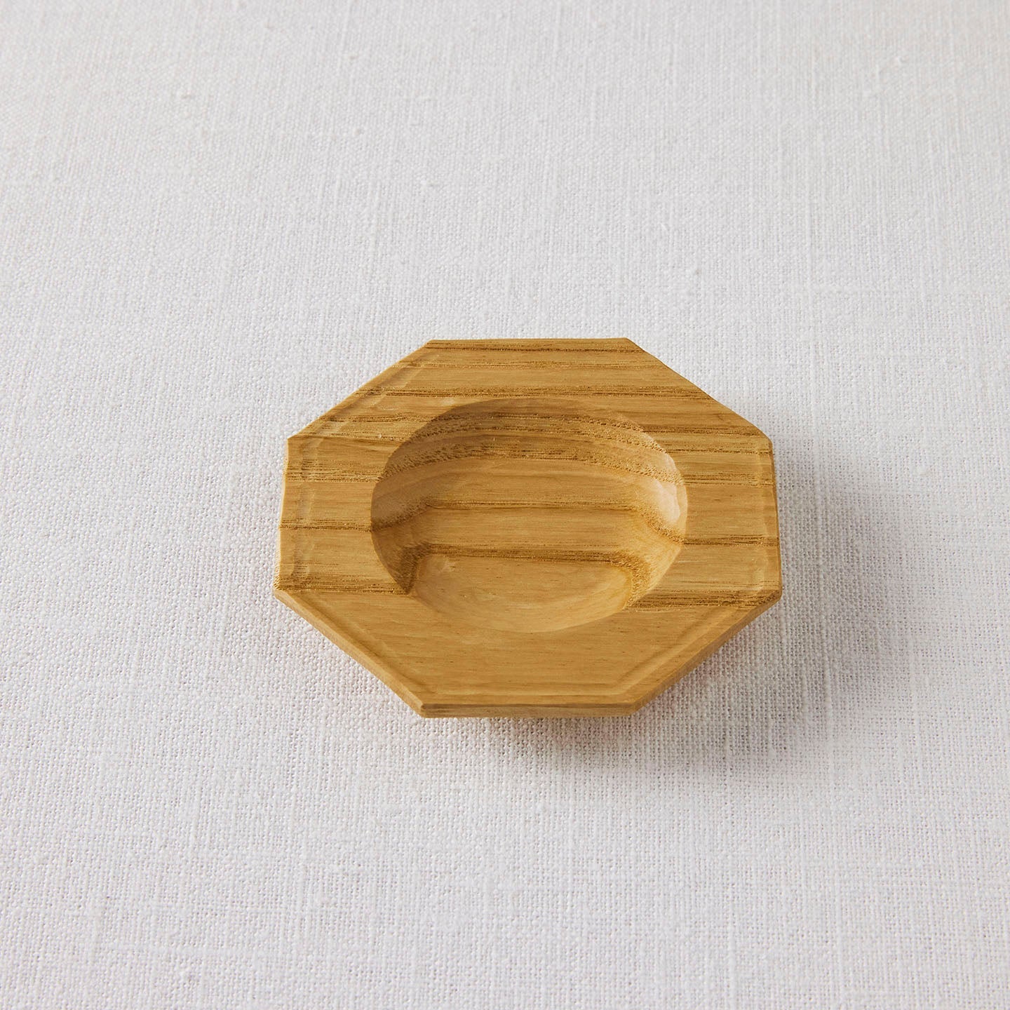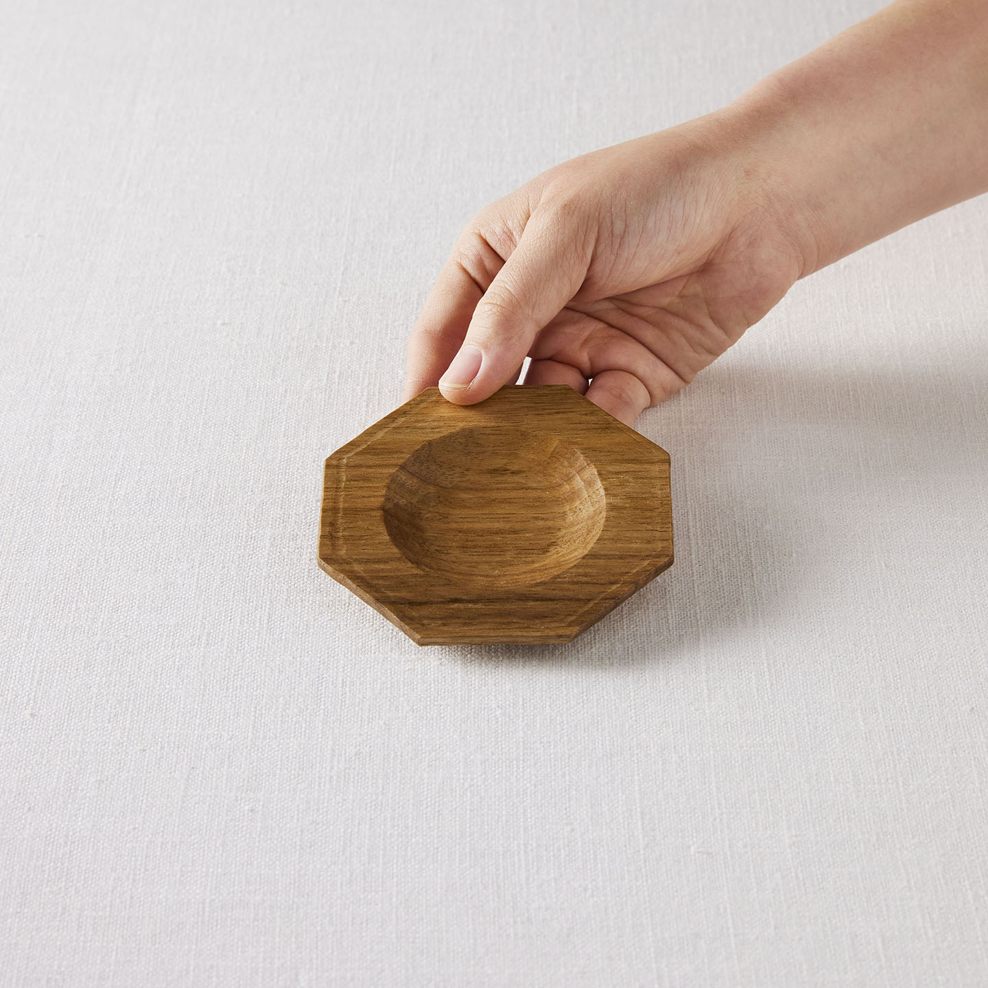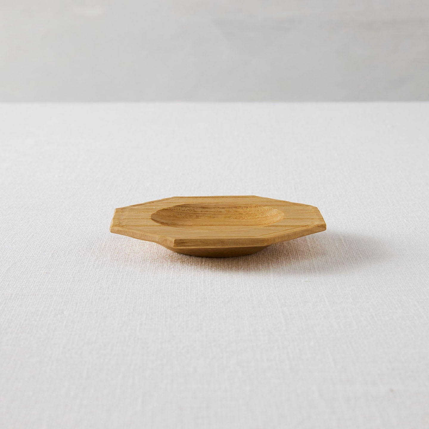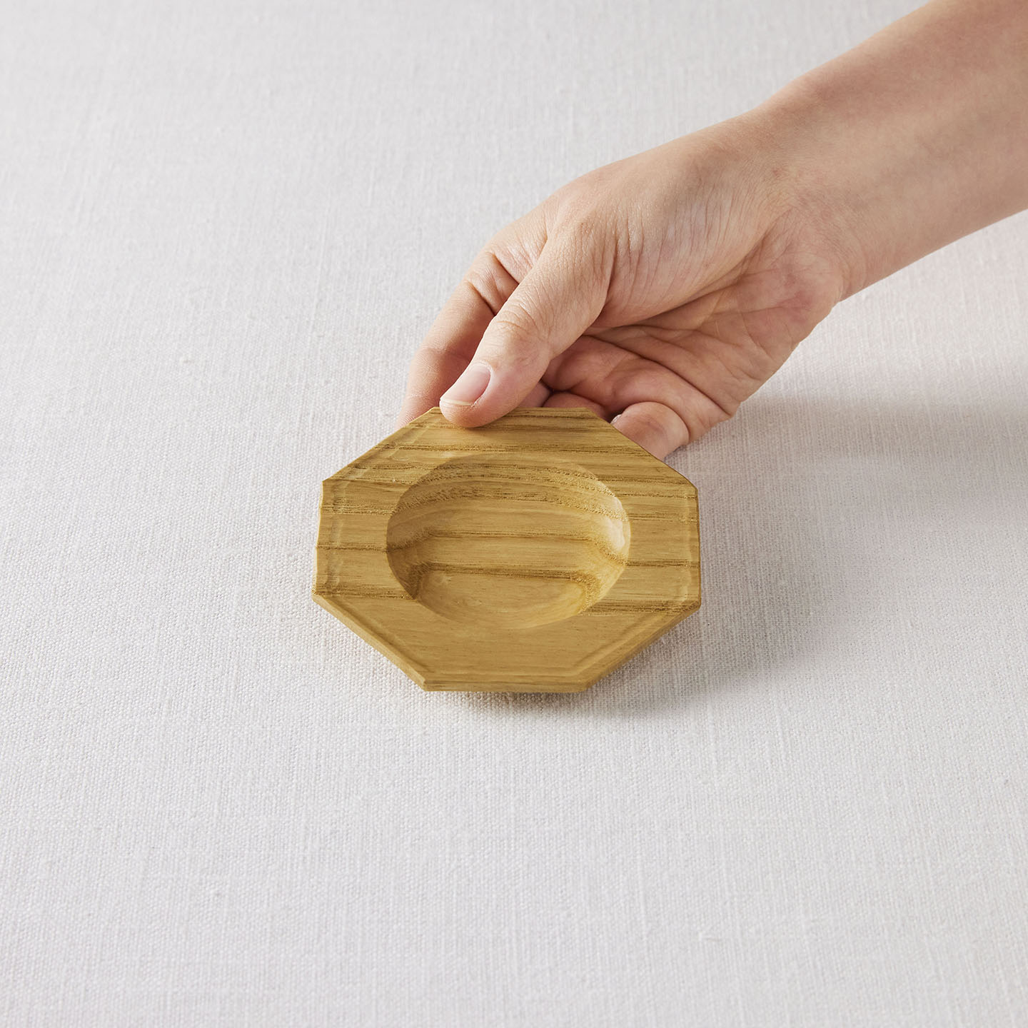「八角皿」は、手のひらにのるぐらいの小ぶりなサイズ。太めのリムに、中央部が丸くくり抜かれていて、ちょっとしたお茶請けをのせるのに適した器です。