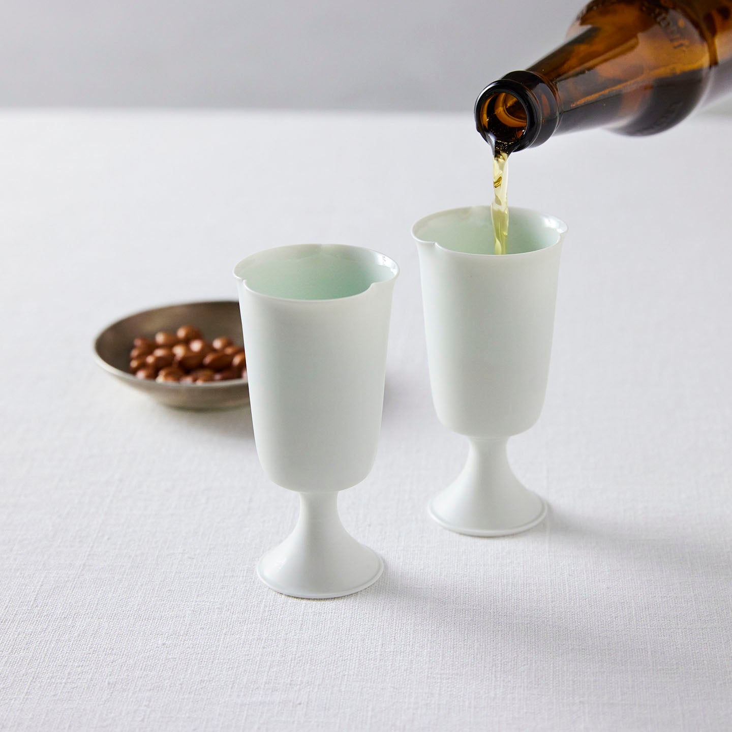 脚付きの「ビール杯」は、その表面の質感の手触りを含めて楽しめる杯です。滑らかに整えられたマットな表面は、触るとひんやりととっても気持ちがいい。