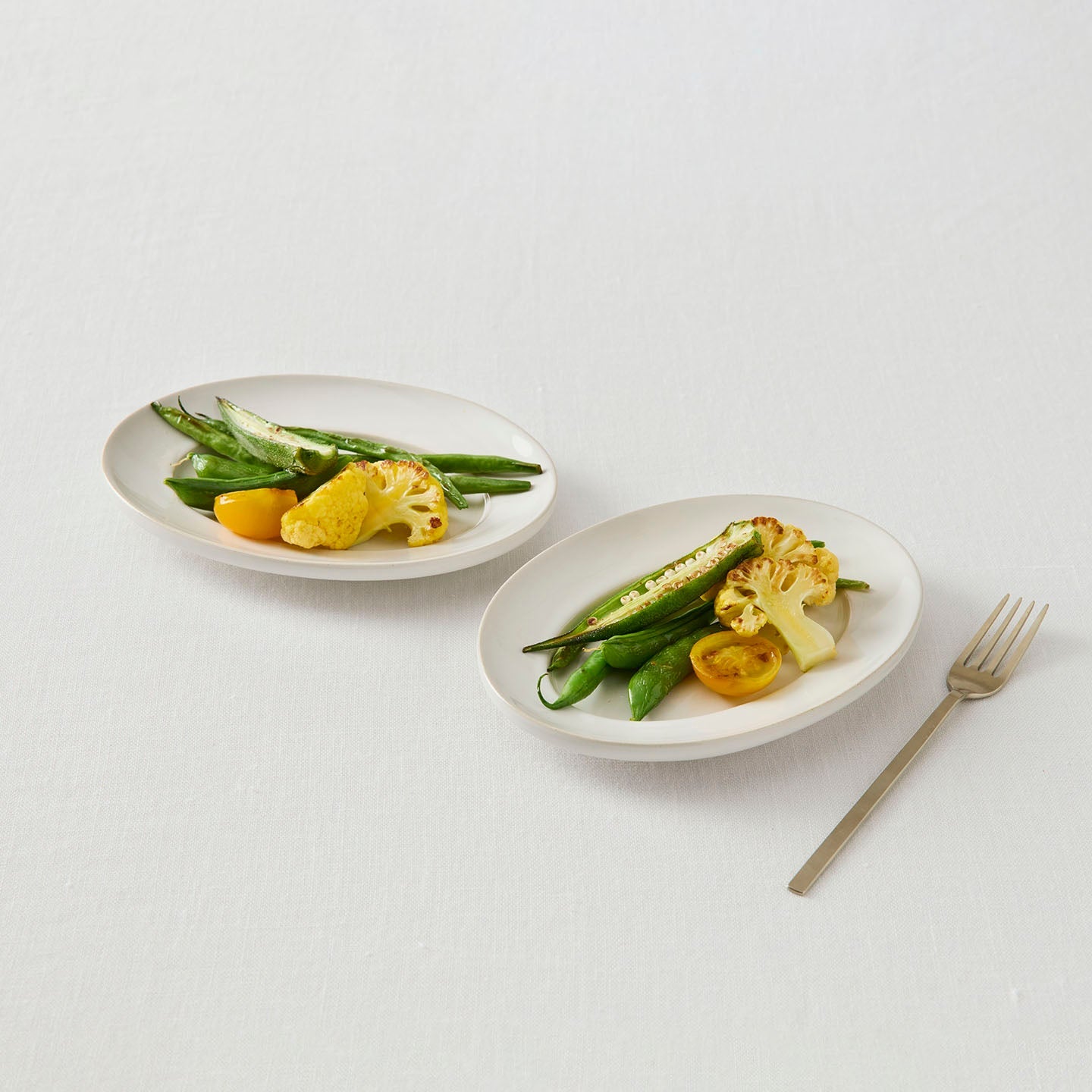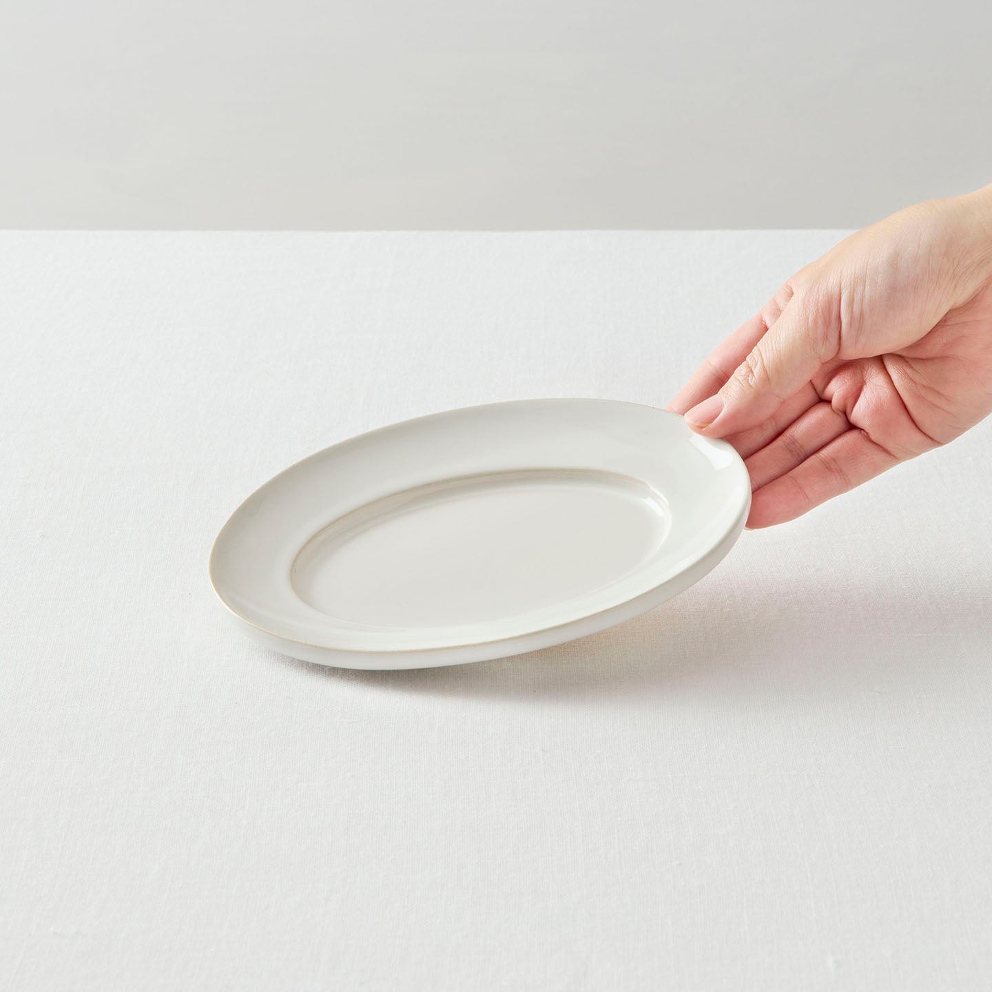 小さなオーバルプレートは、何枚も揃えたくなる使い勝手のよさ。和洋中問わずに使えるシンプルなデザインなので、のせる料理や食材を選びません。