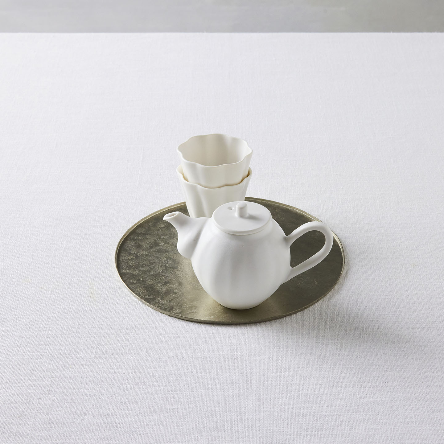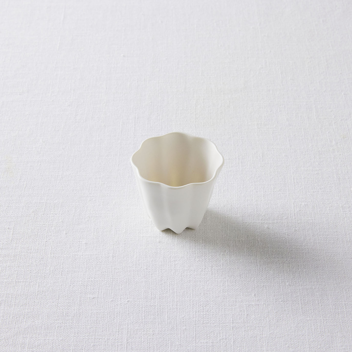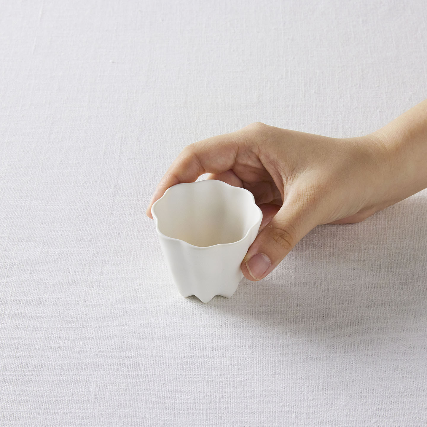 お茶を飲むのはもちろん、食事のときにタレや薬味を入れる小さなカップのように使ってもよさそうな「カヌレ茶杯」。上から見るとお花のようなデザインで、ひとつ置くだけで平凡な食卓がぐっと華やかに。小さな花器のように使ってみてもよさそうです。